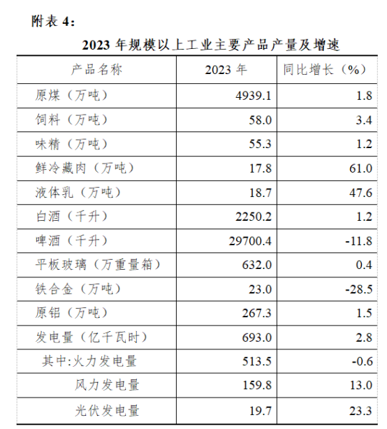 從規(guī)模以上工業(yè)主要產(chǎn)品產(chǎn)量看,原煤產(chǎn)量4939.1萬噸,比上年增長1.8%;發(fā)電量693.0億千瓦時,增長2.8%;原鋁產(chǎn)量267.3萬噸,增長1.5%;味精產(chǎn)量55.3萬噸,增長1.2%;液體乳產(chǎn)量18.7萬噸,增長47.6%;鮮、冷藏肉產(chǎn)量17.8萬噸,增長61.0%;平板玻璃產(chǎn)量632.0萬重量箱,增長0.4%。