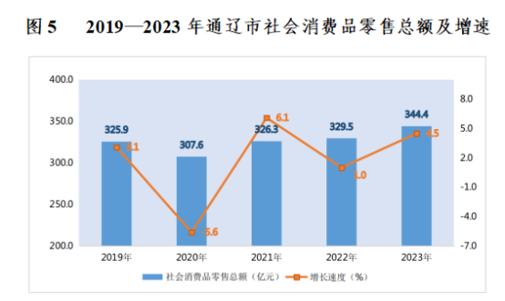 全年社會消費品零售總額344.4億元,比上年增長4.5%。按經(jīng)營單位所在地分,城鎮(zhèn)消費品零售額303.6億元,增長4.5%;鄉(xiāng)村消費品零售額40.7億元,增長4.8%。按消費類型分,商品零售額314.8億元,增長3.7%;餐飲收入29.6億元,增長13.5%。