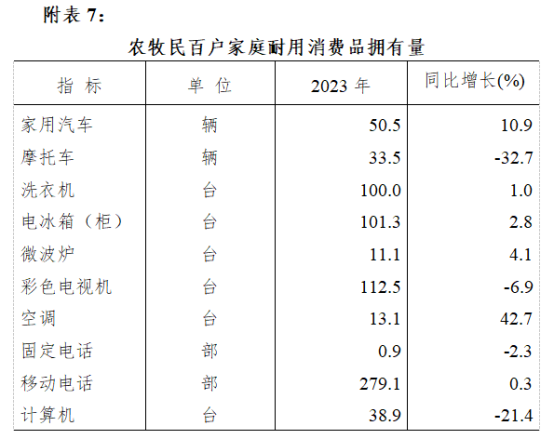 城鎮(zhèn)常住居民人均擁有現(xiàn)住房建筑面積34.1平方米,比上年增長2.8%;農(nóng)村牧區(qū)常住居民人均擁有現(xiàn)住房使用面積33.2平方米,比上年增長1.2%。城鎮(zhèn)常住居民彩色電視機擁有量116.5臺/百戶;農(nóng)村牧區(qū)常住居民彩色電視機擁有量112.5臺/百戶。城鎮(zhèn)常住居民家用電腦擁有量76.5臺/百戶;農(nóng)村牧區(qū)常住居民家用電腦擁有量38.9臺/百戶。