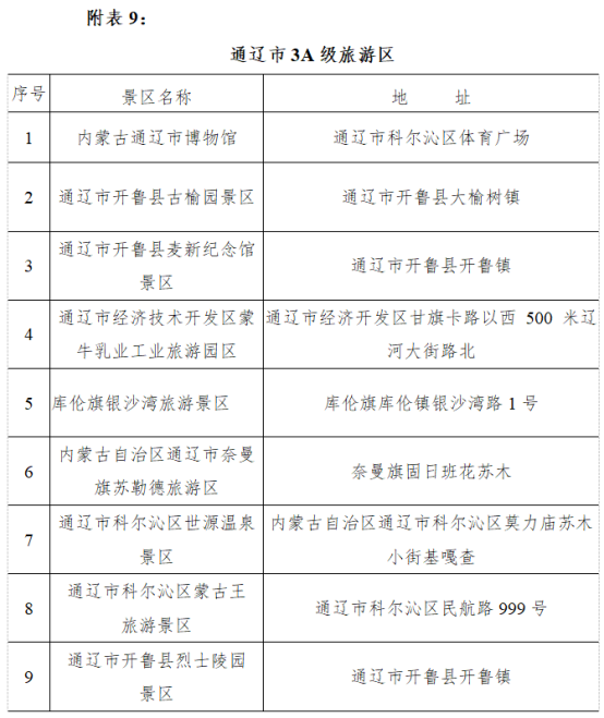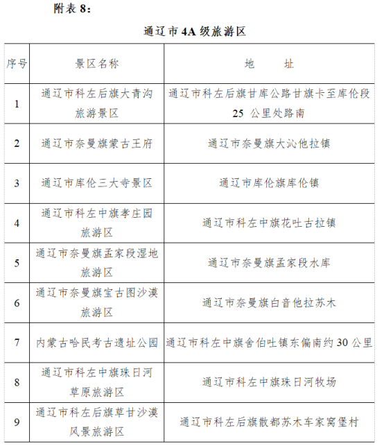 自然公園中,國家級沙漠公園2個:內(nèi)蒙古奈曼寶古圖國家沙漠公園和內(nèi)蒙古庫倫銀沙灣國家沙漠公園。森林公園7個,其中,國家級森林公園1個:內(nèi)蒙古敖倫國家森林公園;自治區(qū)級森林公園6個:內(nèi)蒙古通遼市自治區(qū)森林公園、內(nèi)蒙古科爾沁沙地自治區(qū)森林公園、內(nèi)蒙古吐爾基山自治區(qū)森林公園、內(nèi)蒙古烏斯吐自治區(qū)森林公園、內(nèi)蒙古興隆沼自治區(qū)森林公園、內(nèi)蒙古罕山自治區(qū)森林公園。濕地公園4個,其中,國家級濕地公園1個:內(nèi)蒙古奈曼孟家段國家濕地公園;國家級濕地公園(試點)2個:內(nèi)蒙古科左后旗胡力斯臺淖爾國家濕地公園和內(nèi)蒙古霍林郭勒靜湖國家濕地公園;自治區(qū)級濕地公園1個:內(nèi)蒙古自治區(qū)科爾沁濕地公園。自治區(qū)級地質(zhì)公園1個:內(nèi)蒙古大青溝自治區(qū)級地質(zhì)公園。