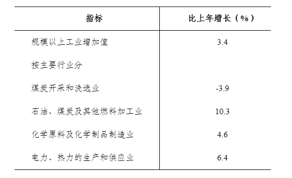 全年全部工業(yè)增加值比上年增長5.2%,其中,規(guī)模以上工業(yè)增加值增長3.4%。在規(guī)模以上工業(yè)中,分經(jīng)濟(jì)類型看,國有控股企業(yè)增加值下降7.7%;股份制企業(yè)增長3.3%;外商及港澳臺商投資企業(yè)下降4.3%。分門類看,采礦業(yè)增長1.9%;制造業(yè)增長4.2%;電力、熱力、燃?xì)饧八纳a(chǎn)和供應(yīng)業(yè)增長1.4%。分輕重工業(yè)看,輕工業(yè)下降8.4%;重工業(yè)增長3.8%。