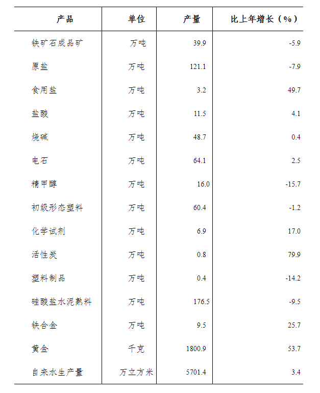 從主要產(chǎn)品產(chǎn)量看,全盟原鹽產(chǎn)量達(dá)121.1萬噸,比上年下降7.9%;鹽酸產(chǎn)量達(dá)11.5萬噸,增長4.1%;電石產(chǎn)量達(dá)64.1萬噸,增長2.5%。