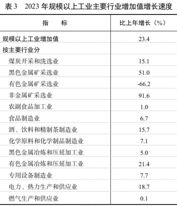 全年全部工業(yè)增加值比上年增長(zhǎng)14.7%,其中,規(guī)模以上工業(yè)增加值增長(zhǎng)23.4%。在規(guī)模以上工業(yè)中,分經(jīng)濟(jì)類(lèi)型看,國(guó)有控股企業(yè)增加值增長(zhǎng)19.8%,股份制企業(yè)增長(zhǎng)23.2%,外商及港澳臺(tái)商投資企業(yè)增長(zhǎng)29.9%。分輕、重工業(yè)看,輕工業(yè)增加值下降0.3%,重工業(yè)增長(zhǎng)23.8%。分門(mén)類(lèi)看,采礦業(yè)增長(zhǎng)27.2%,制造業(yè)增長(zhǎng)23.7%,電力、熱力、燃?xì)饧八a(chǎn)和供應(yīng)業(yè)增長(zhǎng)14.8%。分行業(yè)看,煤炭開(kāi)采和洗選業(yè)增長(zhǎng)15.1%,非金屬礦物制品業(yè)增長(zhǎng)57.4%,化學(xué)原料和化學(xué)制品制造業(yè)增長(zhǎng)7.1%,有色金屬冶煉和壓延加工業(yè)增長(zhǎng)21.4%,專用設(shè)備制造業(yè)增長(zhǎng)7.7%,計(jì)算機(jī)、通信和其他電子設(shè)備制造業(yè)增長(zhǎng)9.4%,電力、熱力生產(chǎn)和供應(yīng)業(yè)增長(zhǎng)18.7%。