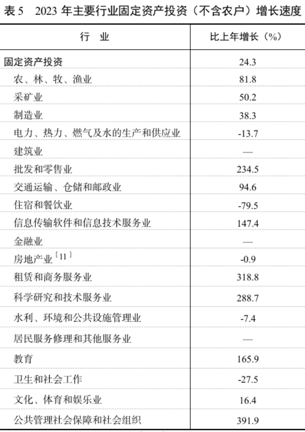 全年固定資產(chǎn)投資(不含農(nóng)戶)比上年增長(zhǎng)24.3%。其中,第一產(chǎn)業(yè)投資增長(zhǎng)84.1%,第二產(chǎn)業(yè)投資增長(zhǎng)26.7%,第三產(chǎn)業(yè)投資增長(zhǎng)16.4%。民間固定資產(chǎn)投資[9]增長(zhǎng)25.5%,基礎(chǔ)設(shè)施投資[10]下降0.5%。