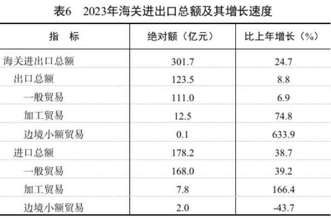 全年海關(guān)進(jìn)出口總額301.7億元,比上年增長(zhǎng)24.7%。其中,出口總額123.5億元,增長(zhǎng)8.8%;進(jìn)口總額178.2億元,增長(zhǎng)38.7%。從貿(mào)易方式看,一般貿(mào)易進(jìn)出口額279.0億元,增長(zhǎng)24.3%,占進(jìn)出口總額的比重為92.5%;加工貿(mào)易進(jìn)出口額20.3億元,增長(zhǎng)101.8%;邊境小額貿(mào)易進(jìn)出口額2.1億元。全市實(shí)際利用外資2315萬(wàn)美元。
