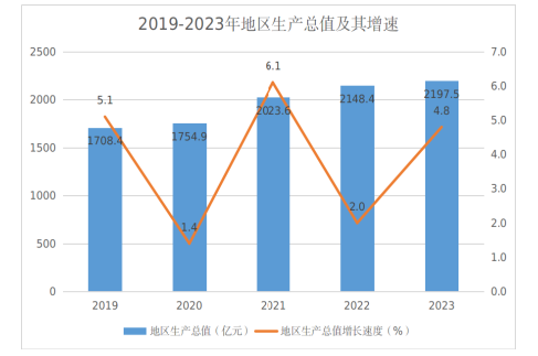 圖1 2019-2023年地區(qū)生產(chǎn)總值及其增速