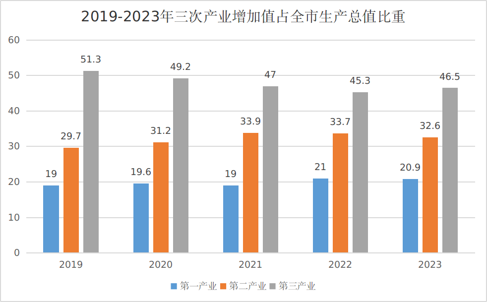 圖2 2019-2023年三次產(chǎn)業(yè)增加值占