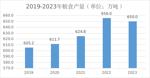 全年糧食產(chǎn)量650萬噸,比上年減少6萬噸,減產(chǎn)0.9%。全年谷物產(chǎn)量623.7萬噸,比上年減產(chǎn)0.6%。其中,稻谷產(chǎn)量10.7萬噸,減產(chǎn)1.1%;小麥產(chǎn)量7.3萬噸,減產(chǎn)22.5%;玉米產(chǎn)量504.4萬噸,增產(chǎn)3.1%。豆類產(chǎn)量12.7萬噸,減產(chǎn)24.7%。