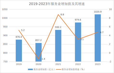圖5 2019-2023年服務(wù)業(yè)增加值及其增速