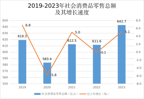 圖6 2019-2023年社會消費品零售總額及其增長速度