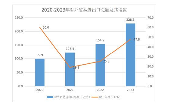 圖7 2020-2023年對外貿(mào)易進出口總額及其增速