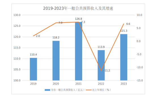 圖8 2019-2023年全市一般公共預(yù)算收入及其增速