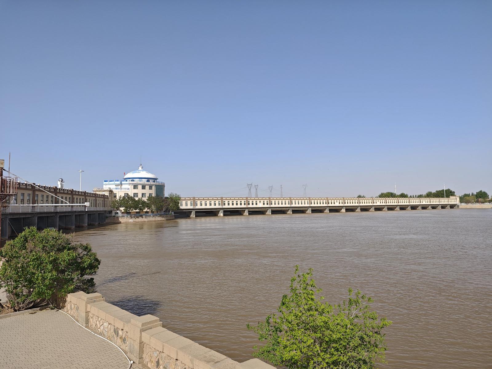 長(zhǎng)達(dá)325米的黃河三盛公水利樞紐,素有“萬(wàn)里黃河第一閘”之稱,是亞洲最大、黃河上唯一以灌溉為主的“一首制”(即一個(gè)口子取水)引水大型平原閘壩工程。雄偉閘壩巍然立于黃河之上,將黃河水一分為二,一部分流向黃河主干道,另一部分則匯入河套灌區(qū)的總干渠,再經(jīng)過(guò)縱橫交錯(cuò)的灌排渠道,潤(rùn)澤河套大地。