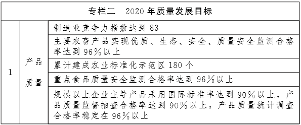 到2020年底,質(zhì)量發(fā)展取得明顯成效,質(zhì)量發(fā)展機(jī)制更加完善,質(zhì)量基礎(chǔ)達(dá)到較高水平,技術(shù)創(chuàng)新能力和品牌競爭能力顯著增強(qiáng),質(zhì)量總體水平達(dá)到國家中等以上水平,質(zhì)量發(fā)展成果惠及民眾。