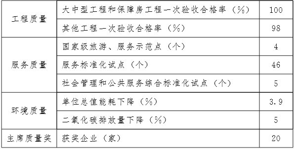 (2)工程質(zhì)量。新開工建設(shè)工程質(zhì)量水平穩(wěn)步提升,節(jié)能、環(huán)保、安全、信息技術(shù)含量顯著增強(qiáng),裝備式建筑占比達(dá)到30%,建筑工程節(jié)能效率不斷提高,綠色建筑和智能建筑得到推廣應(yīng)用,抗各類災(zāi)害能力明顯提高,無重大工程質(zhì)量事故發(fā)生, 大中型工程項(xiàng)目一次驗(yàn)收合格率保持100%,其他工程一次驗(yàn)收合格率保持98%以上,交通建設(shè)工程交工和竣工驗(yàn)收合格率均達(dá)到100%,人民群眾對(duì)工程質(zhì)量滿意度顯著提高。