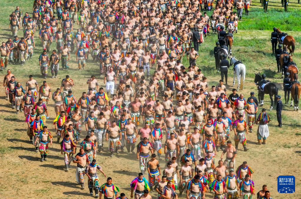 7月14日在開幕式上拍攝的搏克手(無人機(jī)照片)。