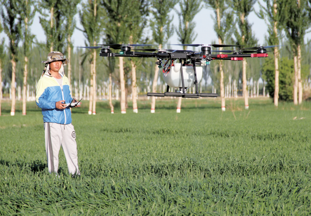 巴彥淖爾市小麥種植采取規(guī)?;N植、標(biāo)準(zhǔn)化生產(chǎn)、集約化經(jīng)營(yíng)、品牌化銷售的模式,實(shí)現(xiàn)由傳統(tǒng)農(nóng)業(yè)向現(xiàn)代農(nóng)業(yè)的轉(zhuǎn)變。圖為植保無(wú)人機(jī)作業(yè)。