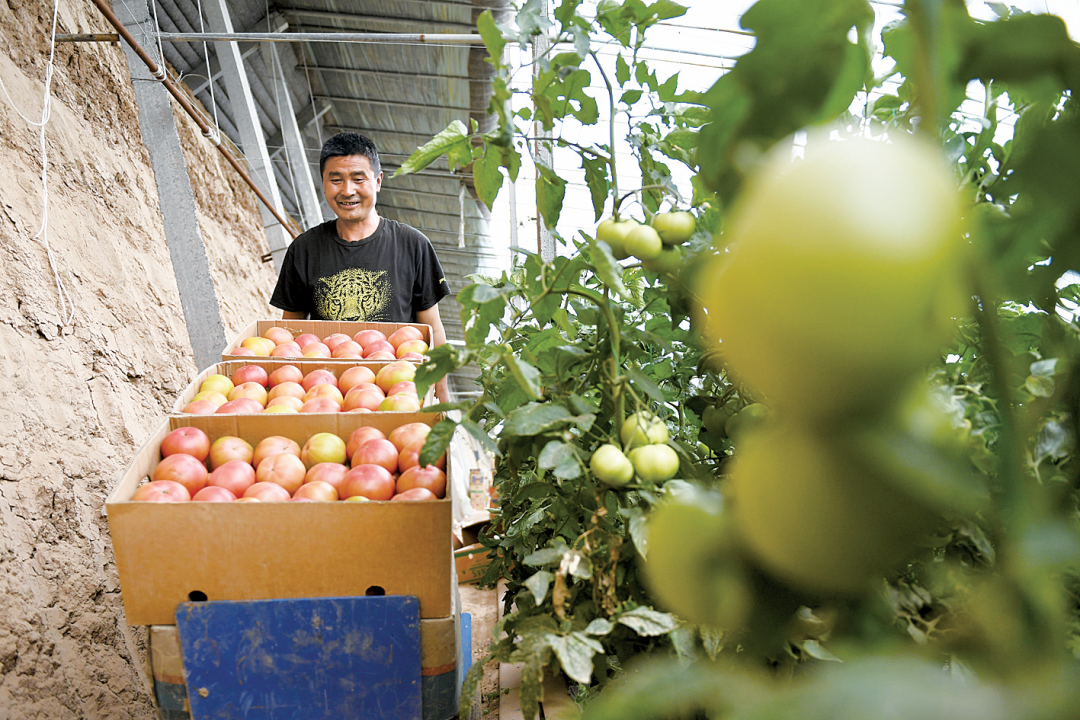 鄂爾多斯市達(dá)拉特旗樹(shù)林召鎮(zhèn)種植戶西紅柿豐收。