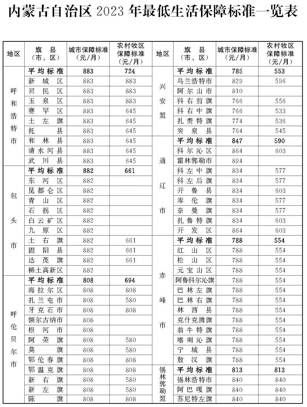 附件:1.內(nèi)蒙古自治區(qū)2023年最低生活保障標(biāo)準(zhǔn)一覽表