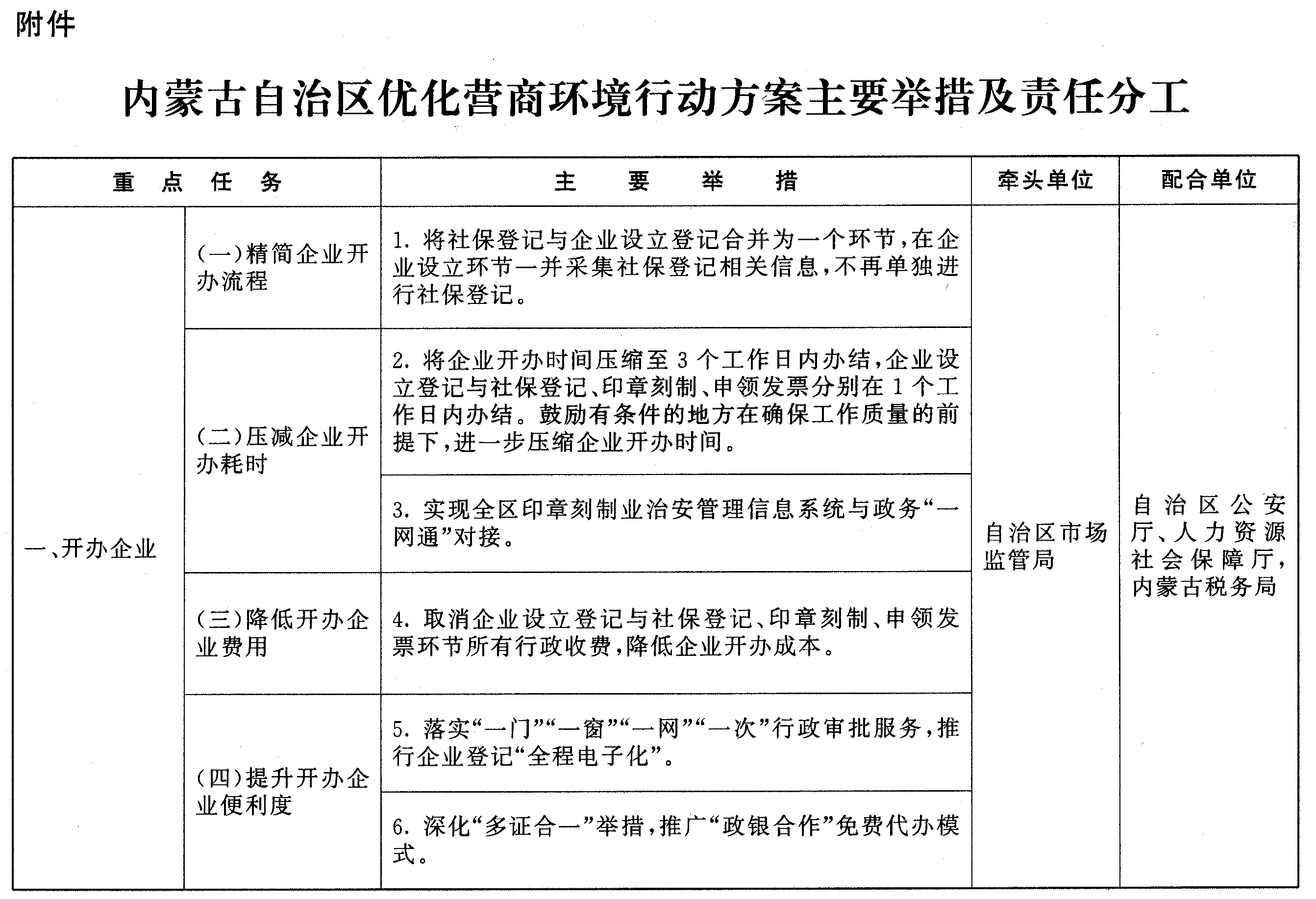 附件:內(nèi)蒙古自治區(qū)優(yōu)化營商環(huán)境行動方案主要舉措及責(zé)任分工