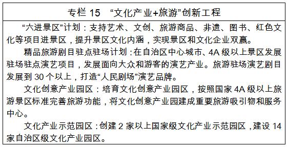 推動“互聯(lián)網(wǎng)+”發(fā)展。加速旅游信息化進(jìn)程,制定實(shí)施“互聯(lián)網(wǎng)+文旅”行動計劃,運(yùn)用云計算、物聯(lián)網(wǎng)、大數(shù)據(jù)等新一代信息技術(shù),開發(fā)線上線下有機(jī)結(jié)合的旅游服務(wù)產(chǎn)品,系統(tǒng)化提升旅游管理、服務(wù)、營銷信息化水平。依托“互聯(lián)網(wǎng)+”,研發(fā)多維度虛擬旅游,深化旅游體驗,推動定制旅游服務(wù),開發(fā)多元旅游應(yīng)用客戶端。深入實(shí)施“互聯(lián)網(wǎng)+文化產(chǎn)業(yè)”行動計劃,推動演藝會展、娛樂、民族工藝美術(shù)、文化旅游數(shù)字化升級。推進(jìn)音樂動漫、數(shù)字影視、藝術(shù)設(shè)計等新業(yè)態(tài)發(fā)展。強(qiáng)化數(shù)字技術(shù)支撐服務(wù),統(tǒng)籌實(shí)施全區(qū)文化信息資源共享、數(shù)字圖書館推廣及數(shù)字博物館、數(shù)字文化館建設(shè)。