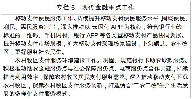 (一)現(xiàn)代金融業(yè)。以服務(wù)實(shí)體經(jīng)濟(jì)為導(dǎo)向,以降低融資成本、豐富產(chǎn)品供給、提升服務(wù)能力為目標(biāo),防控金融風(fēng)險、深化金融改革,著力推動普惠金融和綠色金融發(fā)展,努力實(shí)現(xiàn)地方金融實(shí)力明顯增強(qiáng)、社會融資結(jié)構(gòu)明顯改善、金融服務(wù)能力明顯提升、金融發(fā)展環(huán)境明顯優(yōu)化。