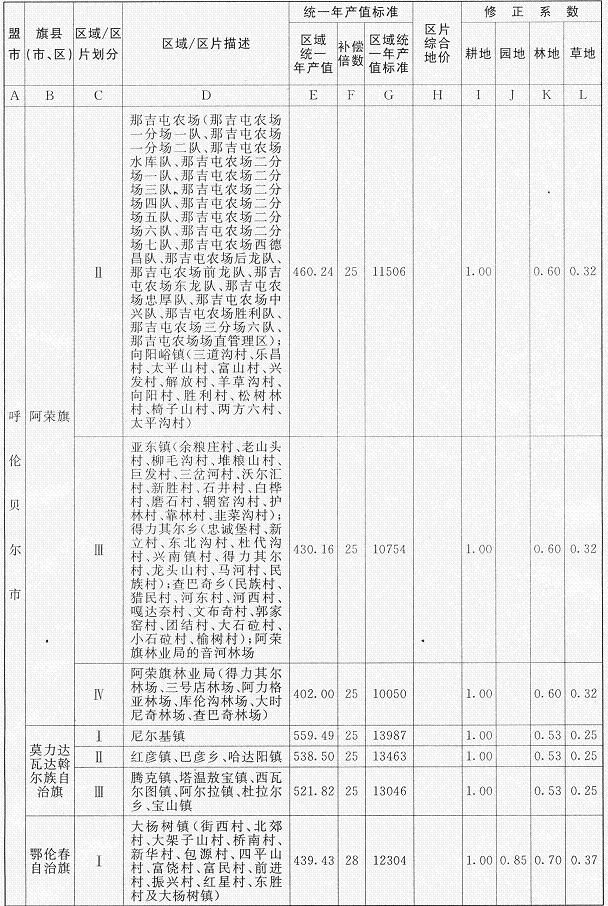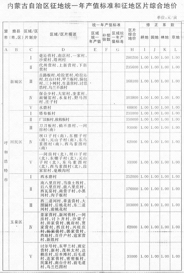 《內(nèi)蒙古自治區(qū)人民政府辦公廳關(guān)于公布實(shí)施自治區(qū)征地統(tǒng)一年產(chǎn)值標(biāo)準(zhǔn)和征地區(qū)片綜合地價(jià)的通知》(內(nèi)政辦發(fā)〔2009〕129號(hào))同時(shí)廢止。