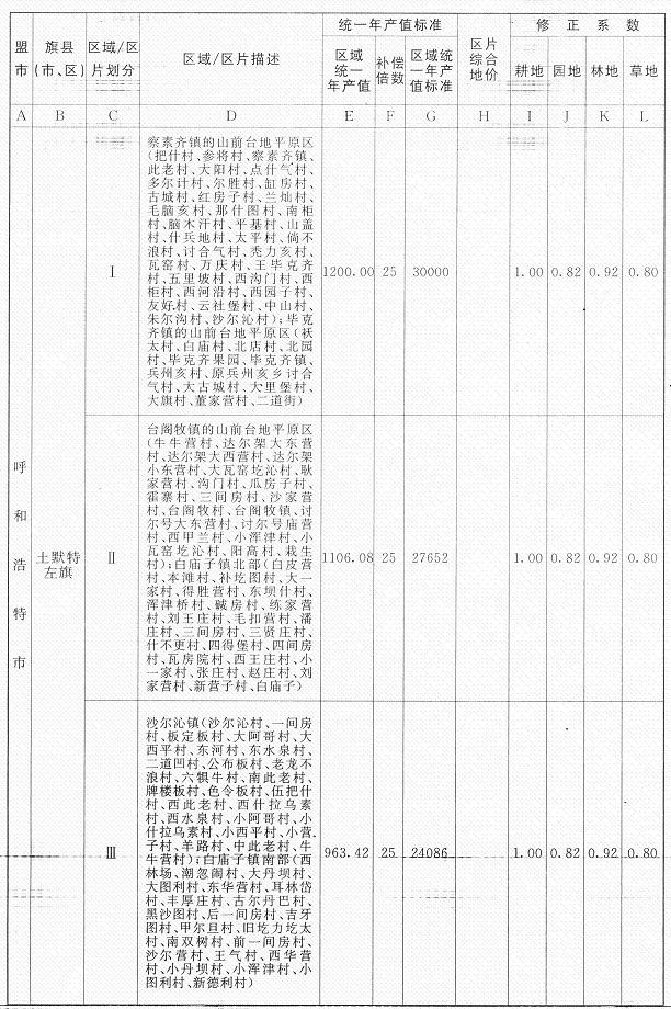 為深入貫徹落實(shí)《國(guó)務(wù)院關(guān)于深化改革嚴(yán)格土地管理的決定》(國(guó)發(fā)〔2004〕28號(hào))精神,進(jìn)一步加強(qiáng)征地補(bǔ)償安置工作,經(jīng)自治區(qū)人民政府同意,決定公布自治區(qū)征地統(tǒng)一年產(chǎn)值標(biāo)準(zhǔn)和征地區(qū)片綜合地價(jià)(以下簡(jiǎn)稱新征地補(bǔ)償標(biāo)準(zhǔn)),并于自2012年1月1日起施行?,F(xiàn)將有關(guān)事宜通知如下: