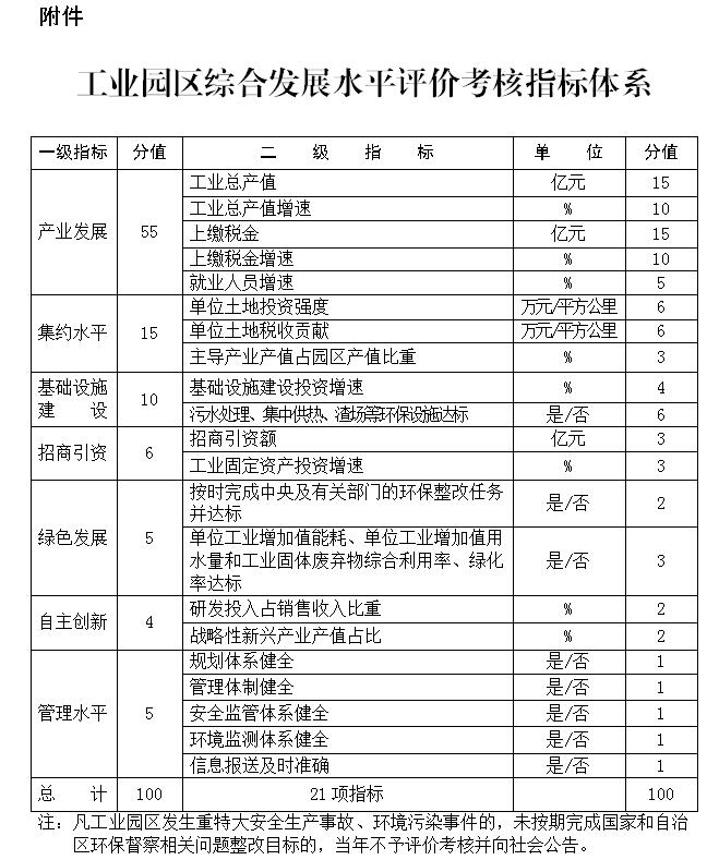 附件:工業(yè)園區(qū)綜合發(fā)展水平評價考核指標體系?