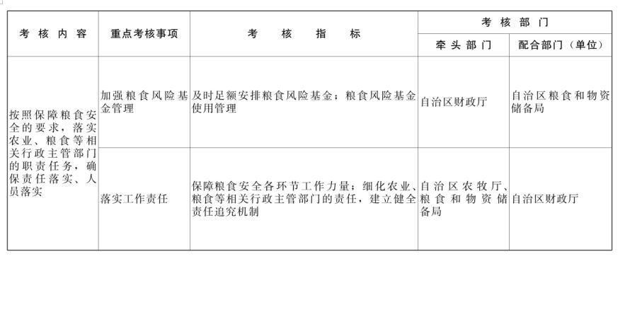 第五條??自治區(qū)各相關部門和單位根據(jù)職責分工,結合日常工作,對各盟市糧食安全盟市長責任制落實情況進行監(jiān)督檢查。檢查結果作為年度考核的重要內容,納入考核評分體系。