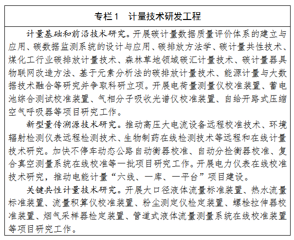 (二)加強(qiáng)支持保障。加強(qiáng)計(jì)量基礎(chǔ)設(shè)施和能力建設(shè),保障法制計(jì)量和量傳溯源體系有效運(yùn)行。公益性計(jì)量工作所需經(jīng)費(fèi)按規(guī)定納入同級(jí)財(cái)政預(yù)算。發(fā)展改革、財(cái)政、科技、人力資源社會(huì)保障等部門要會(huì)同市場(chǎng)監(jiān)管部門制定相應(yīng)的投資、科技和人才保障支持政策。加強(qiáng)對(duì)計(jì)量重大科研項(xiàng)目和計(jì)量科技創(chuàng)新支撐平臺(tái)的支持,促進(jìn)計(jì)量科技研發(fā),產(chǎn)業(yè)計(jì)量、碳計(jì)量、能源計(jì)量等重點(diǎn)項(xiàng)目落實(shí)和科研成果的轉(zhuǎn)化應(yīng)用。鼓勵(lì)采用多元化融資方式,拓寬融資渠道,積極引導(dǎo)社會(huì)資金參與計(jì)量技術(shù)、裝置研發(fā)和應(yīng)用服務(wù)。