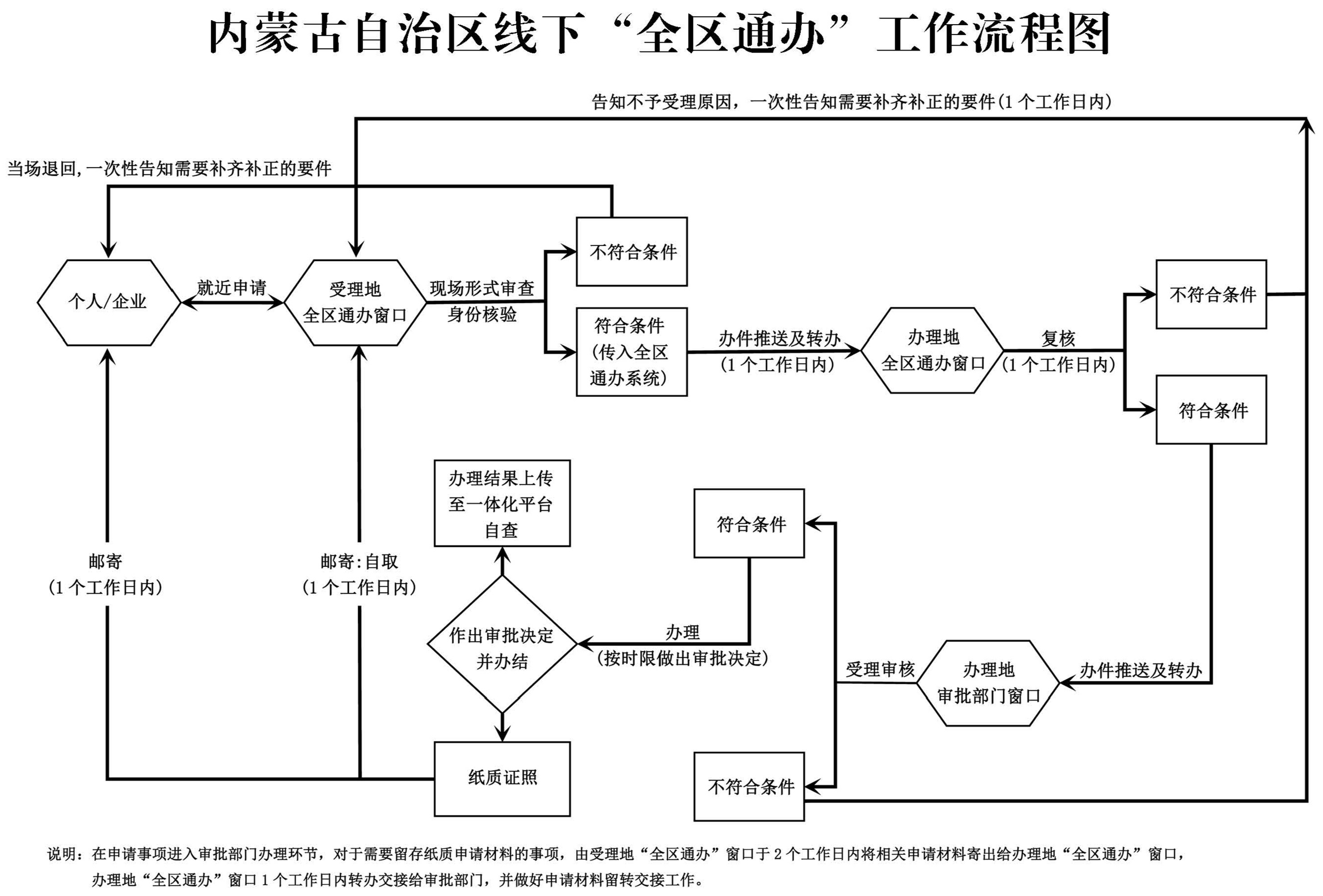 受理地“全區(qū)通辦”窗口現(xiàn)場(chǎng)對(duì)申請(qǐng)材料進(jìn)行形式審查、身份核驗(yàn),1個(gè)工作日內(nèi)完成受理及推送轉(zhuǎn)辦至辦理地“全區(qū)通辦”窗口;需要留存紙質(zhì)申請(qǐng)材料的,2個(gè)工作日內(nèi)寄出給辦理地“全區(qū)通辦”窗口。辦理地“全區(qū)通辦”窗口在1個(gè)工作日內(nèi)完成復(fù)核并推送至審批部門(mén),審批部門(mén)按規(guī)定、按承諾辦理時(shí)限辦結(jié),并在1個(gè)工作日內(nèi)寄出辦理結(jié)果。