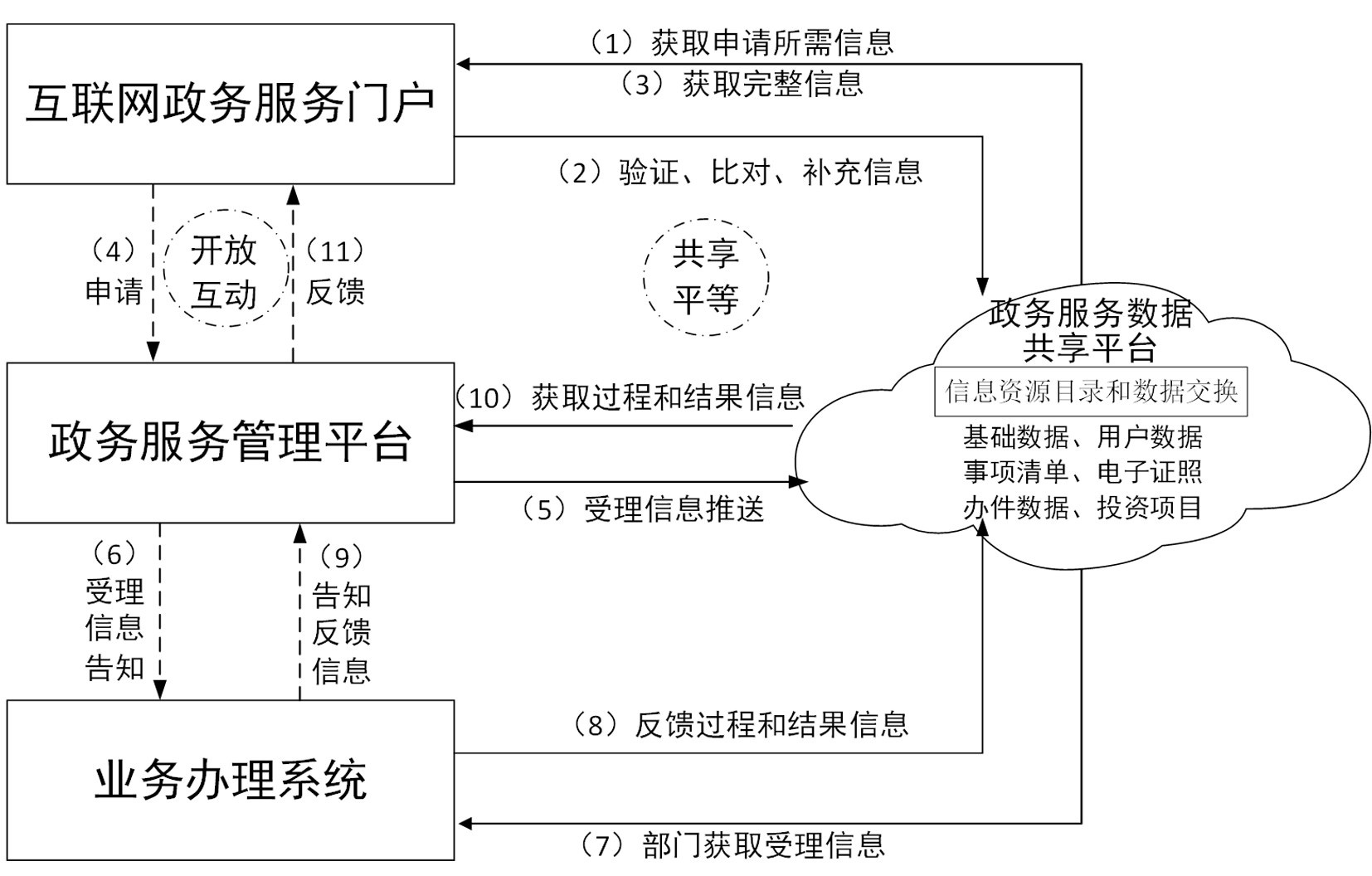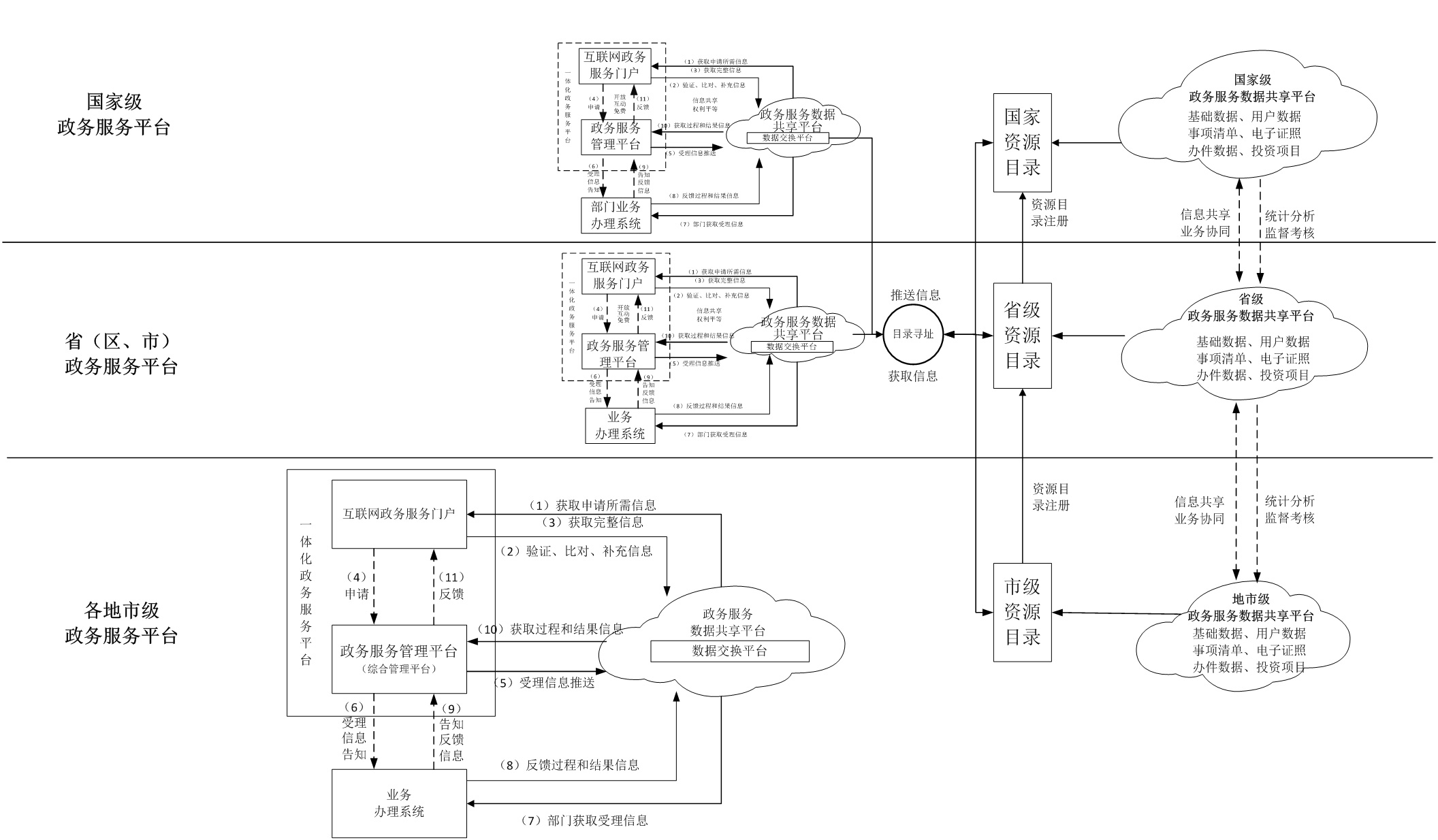 “互聯(lián)網(wǎng)+政務(wù)服務(wù)”平臺(tái)總體層級(jí)架構(gòu)和信息流架構(gòu)示意圖