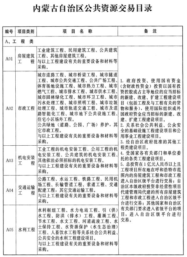 一、凡列入《目錄》的各類(lèi)公共資源項(xiàng)目,須進(jìn)入自治區(qū)各級(jí)公共資源交易平臺(tái)進(jìn)行交易。