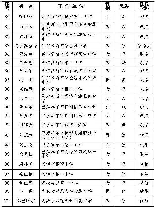 為了貫徹落實《國務院關(guān)于加強教師隊伍建設(shè)的意見》(國發(fā)〔2012〕41號)和《國務院辦公廳關(guān)于印發(fā)鄉(xiāng)村教師支持計劃(2015-2020年)的通知》(國辦發(fā)〔2015〕43號)精神,加強中小學骨干教師隊伍建設(shè),不斷提高中小學教師隊伍的整體素質(zhì),充分發(fā)揮廣大中小學教師教書育人的積極性和創(chuàng)造性,進一步推動我區(qū)基礎(chǔ)教育改革和發(fā)展。經(jīng)自治區(qū)特級教師評審委員會評審,自治區(qū)人民政府決定授予謝靜澤等100人自治區(qū)第十批中小學特級教師稱號。