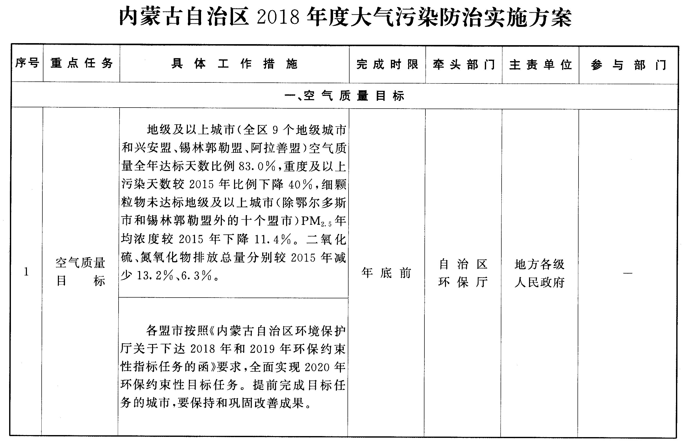經(jīng)自治區(qū)人民政府同意,現(xiàn)將《內(nèi)蒙古自治區(qū)2018年度大氣污染防治實(shí)施方案》印發(fā)給你們,請結(jié)合實(shí)際,認(rèn)真組織實(shí)施。