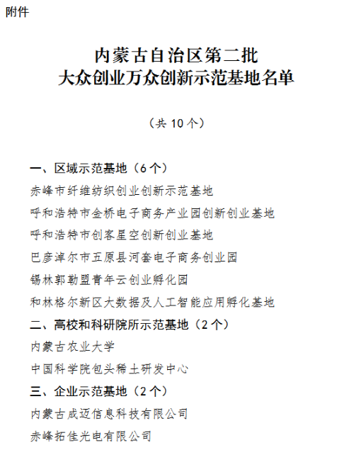 附件:內(nèi)蒙古自治區(qū)第二批大眾創(chuàng)業(yè)萬眾創(chuàng)新示范基地名單