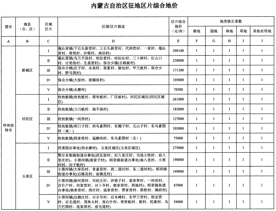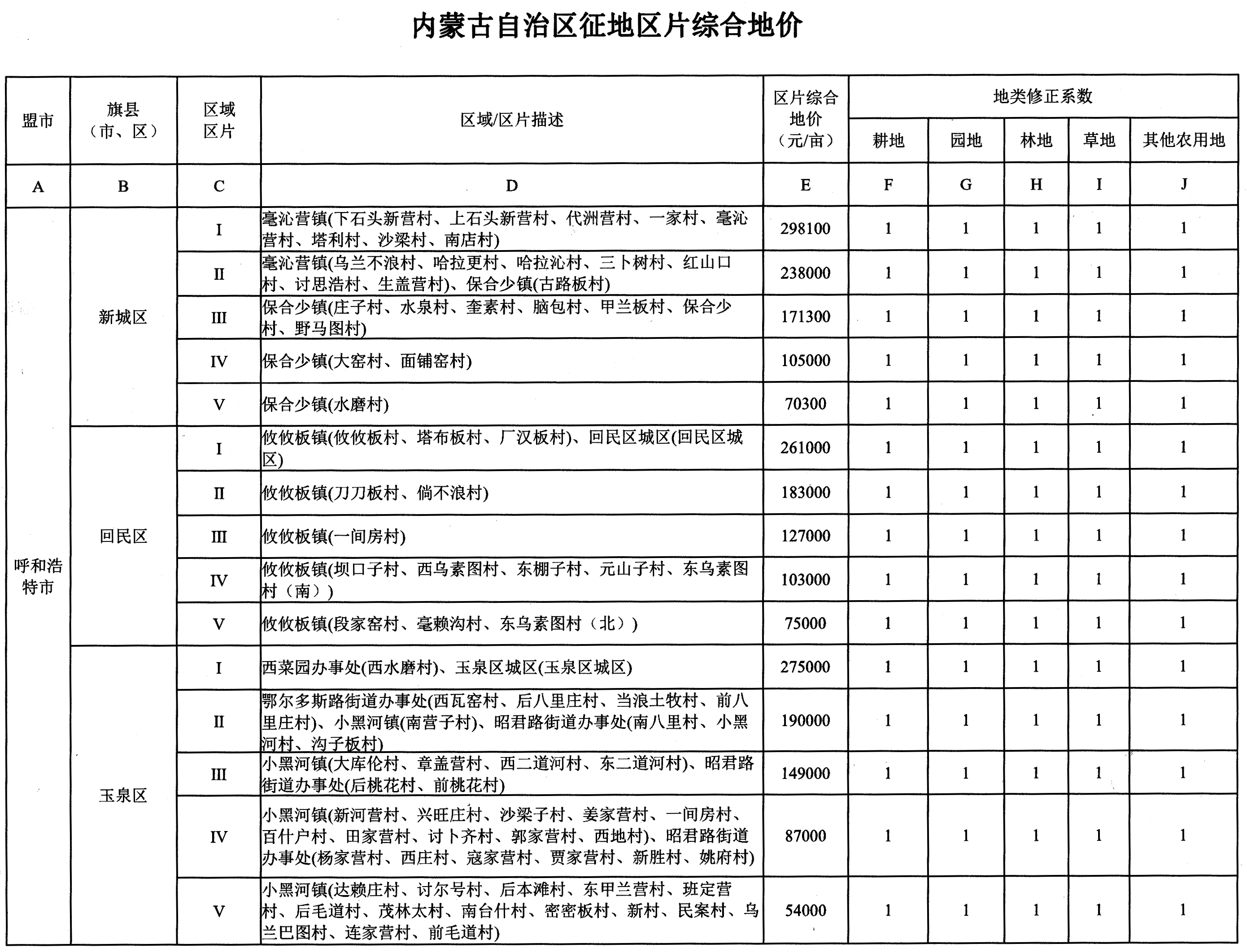 2020年1月1日《土地管理法》施行之日起至此次征地區(qū)片綜合地價公布實施前批準的項目用地,征地補償標(biāo)準按照《內(nèi)蒙古自治區(qū)人民政府辦公廳關(guān)于公布自治區(qū)征地統(tǒng)一年產(chǎn)值標(biāo)準和征地區(qū)片綜合地價的通知》(內(nèi)政辦發(fā)〔2018〕4號)執(zhí)行。