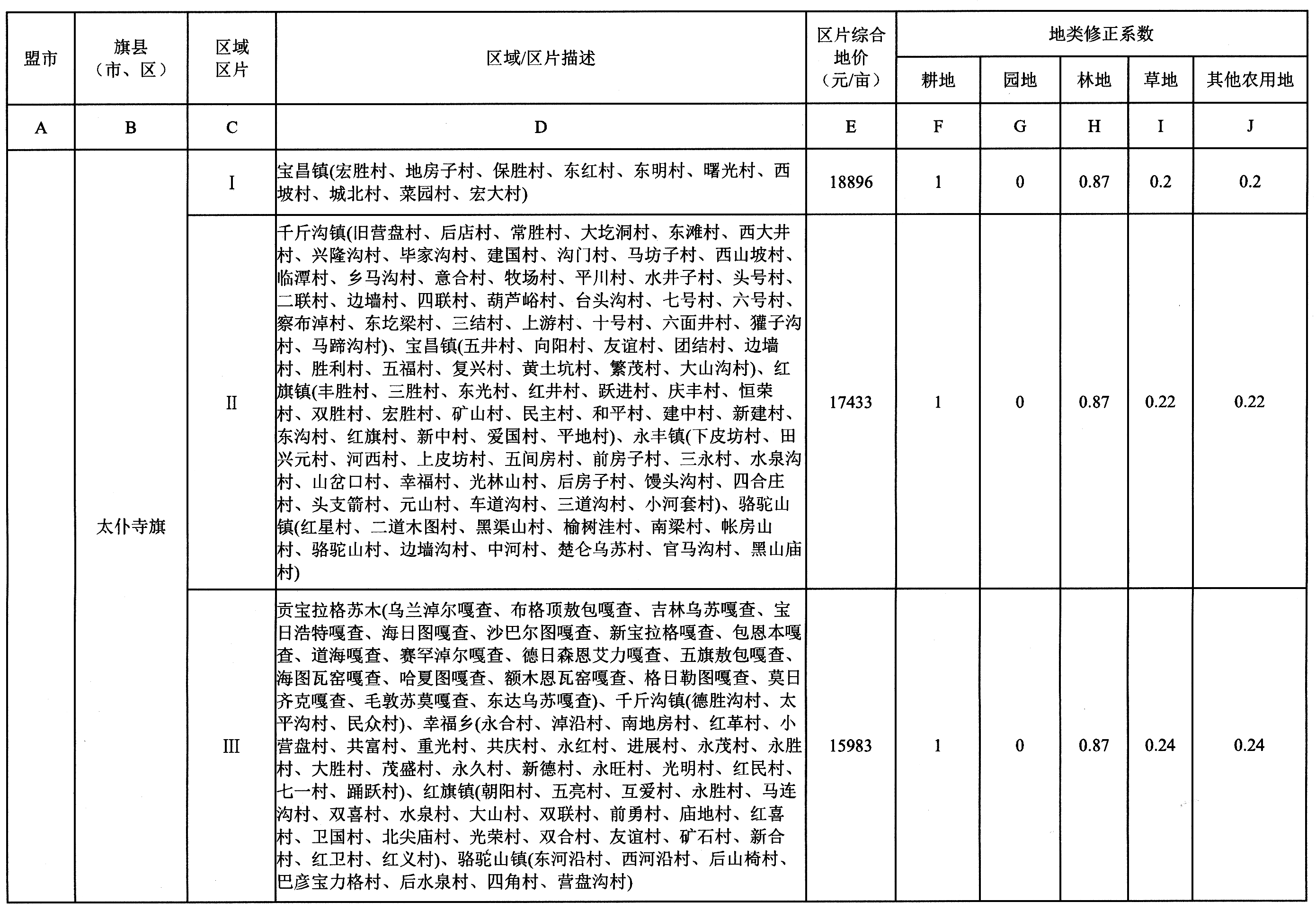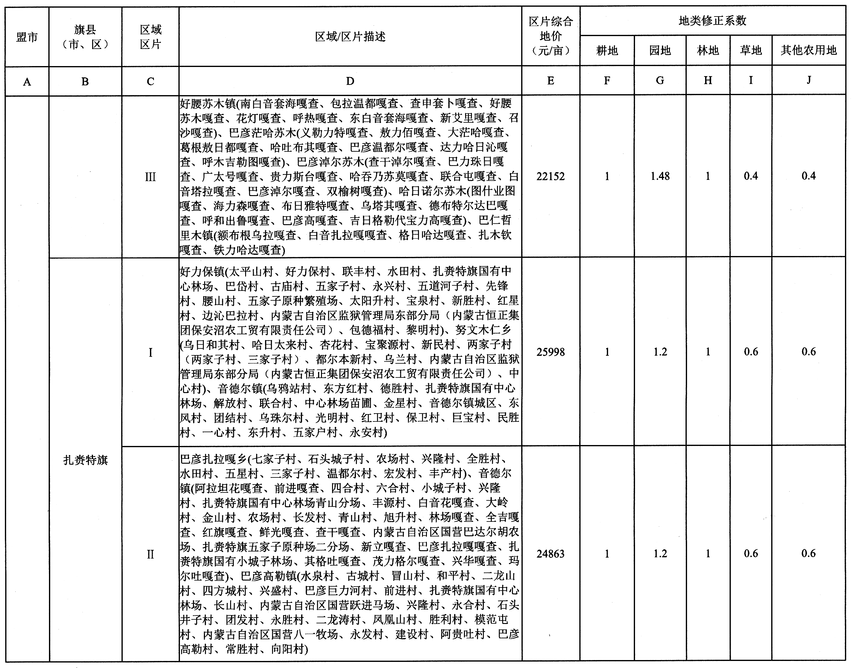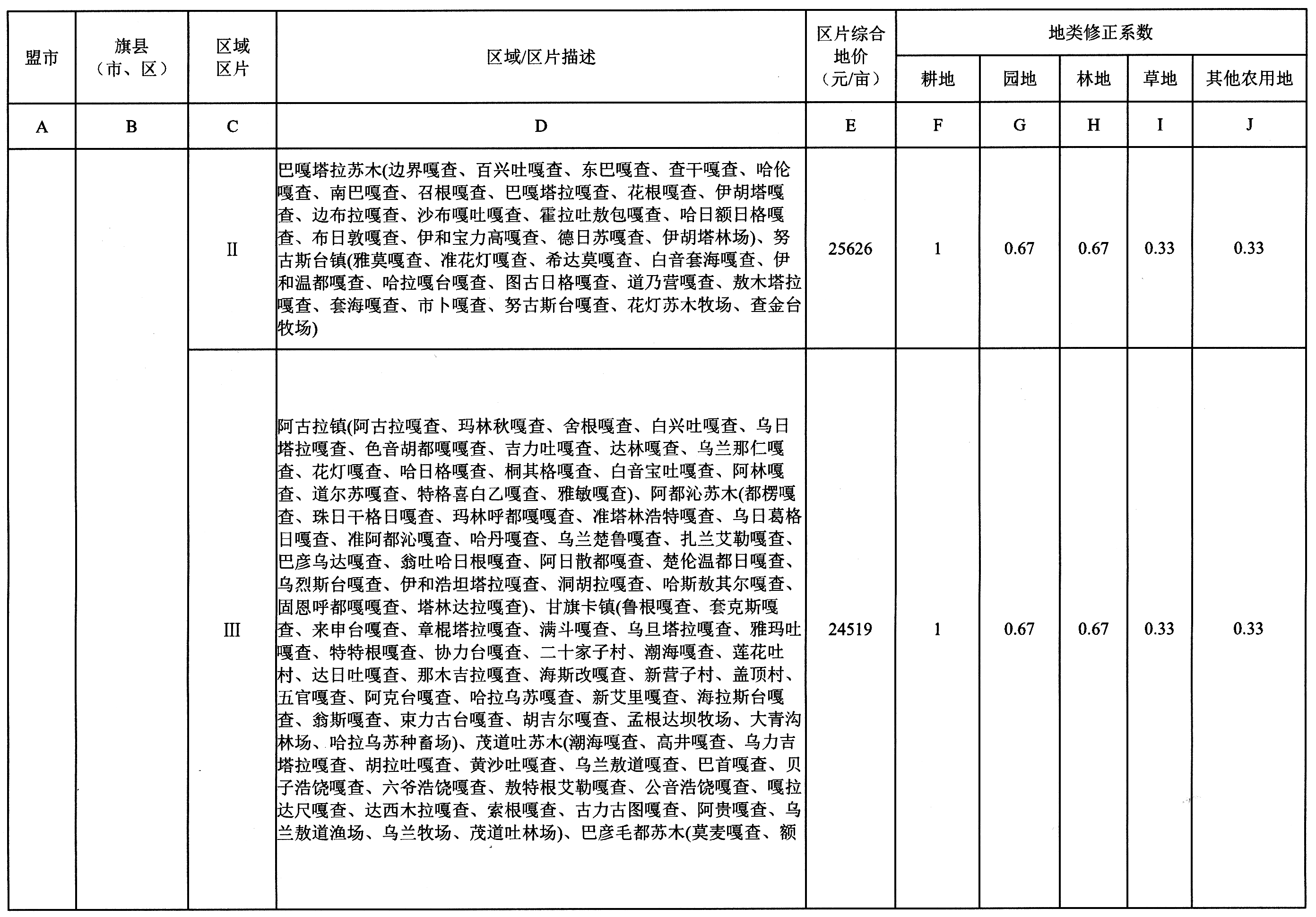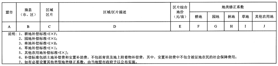征收農(nóng)用地按區(qū)片綜合地價進行補償,是國家對被征地農(nóng)牧民長遠利益保護的重大舉措,也是推進土地使用制度改革的重要舉措,對于進一步加強征地補償安置工作,讓被征地農(nóng)牧民分享土地增值“紅利”,切實保護被征地農(nóng)牧民合法權(quán)益,維護社會和諧穩(wěn)定,保障自治區(qū)經(jīng)濟高質(zhì)量發(fā)展,具有十分重要的意義。為深入貫徹實施新修正的《中華人民共和國土地管理法》(以下簡稱《土地管理法》),進一步做好我區(qū)征地補償安置工作,經(jīng)自治區(qū)人民政府同意,現(xiàn)將《內(nèi)蒙古自治區(qū)征地區(qū)片綜合地價》予以公布,并提出以下要求,請一并貫徹落實。