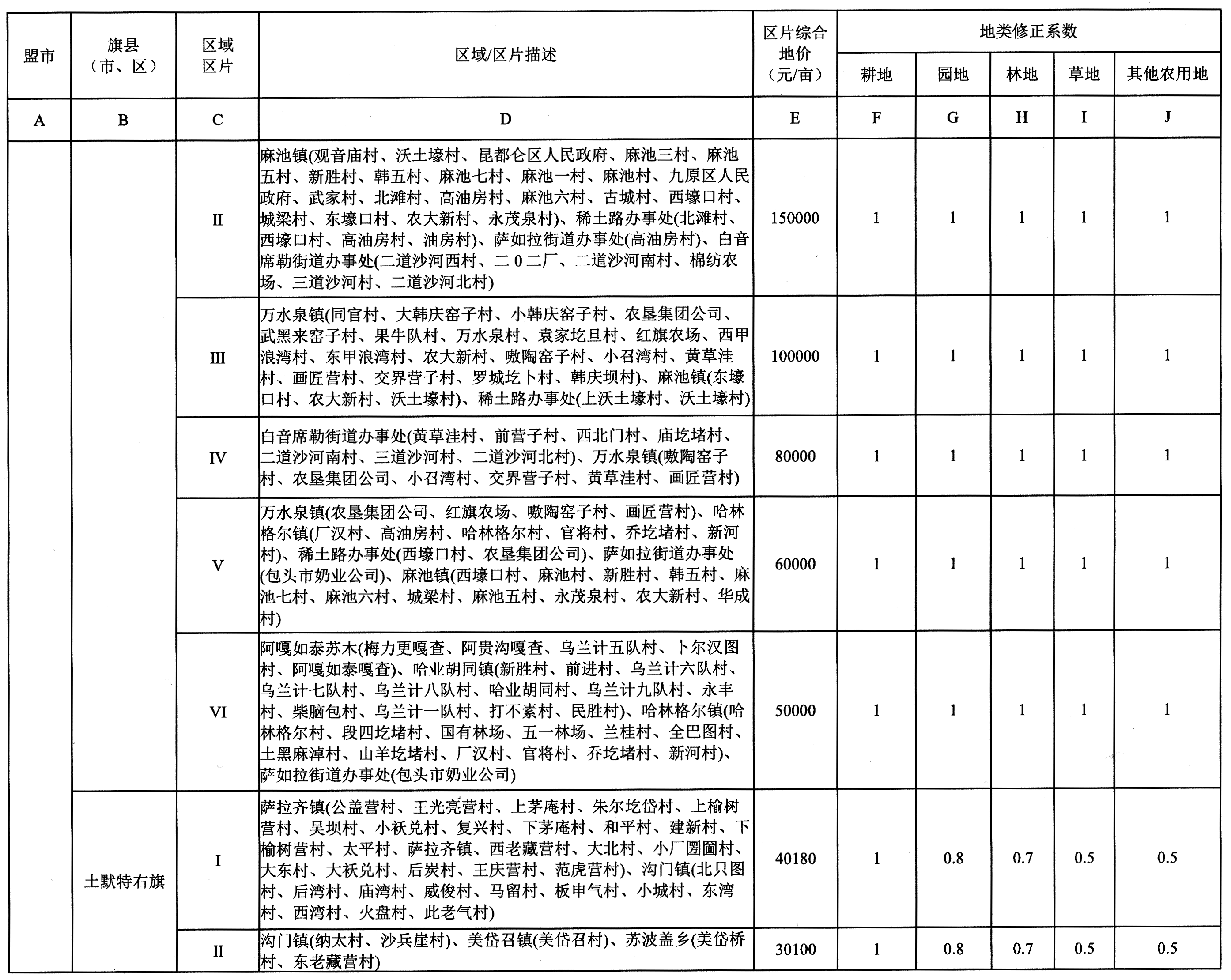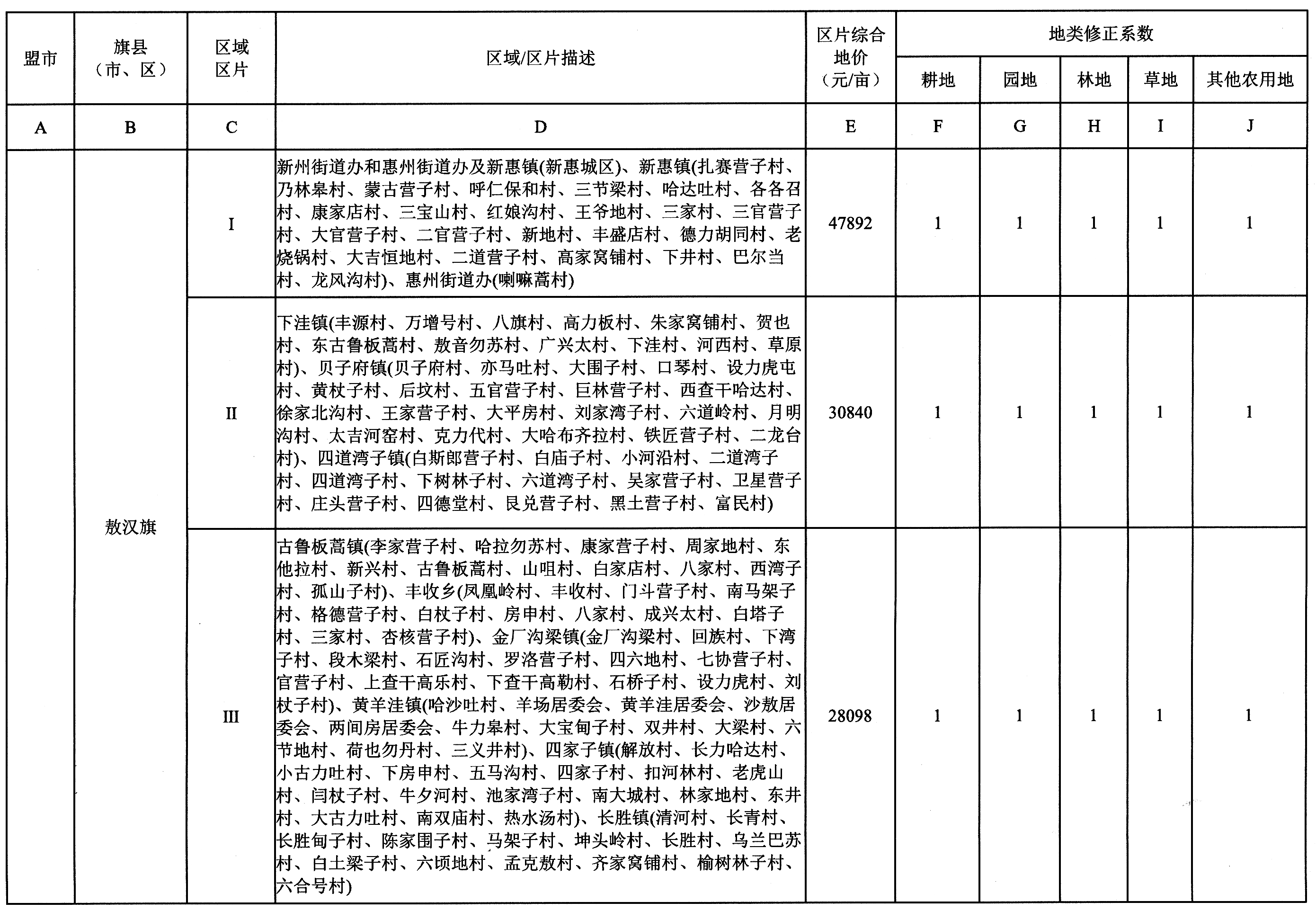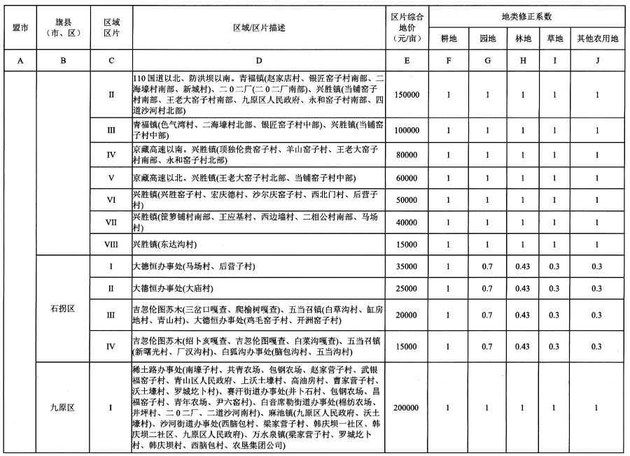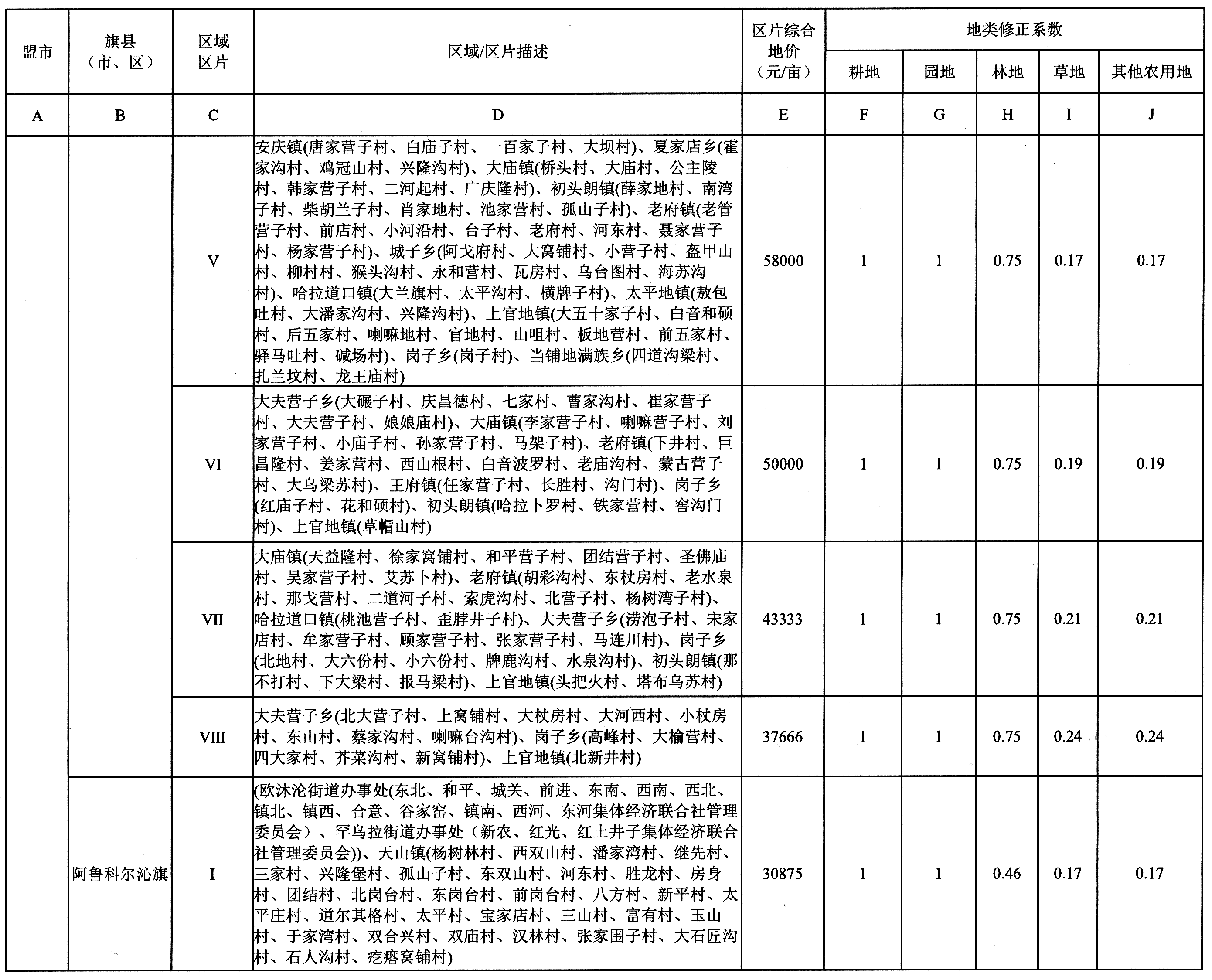 征收農(nóng)用地按區(qū)片綜合地價進行補償,是國家對被征地農(nóng)牧民長遠利益保護的重大舉措,也是推進土地使用制度改革的重要舉措,對于進一步加強征地補償安置工作,讓被征地農(nóng)牧民分享土地增值“紅利”,切實保護被征地農(nóng)牧民合法權(quán)益,維護社會和諧穩(wěn)定,保障自治區(qū)經(jīng)濟高質(zhì)量發(fā)展,具有十分重要的意義。為深入貫徹實施新修正的《中華人民共和國土地管理法》(以下簡稱《土地管理法》),進一步做好我區(qū)征地補償安置工作,經(jīng)自治區(qū)人民政府同意,現(xiàn)將《內(nèi)蒙古自治區(qū)征地區(qū)片綜合地價》予以公布,并提出以下要求,請一并貫徹落實。