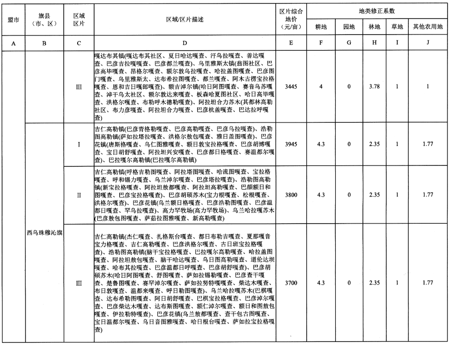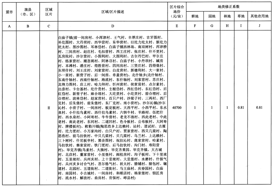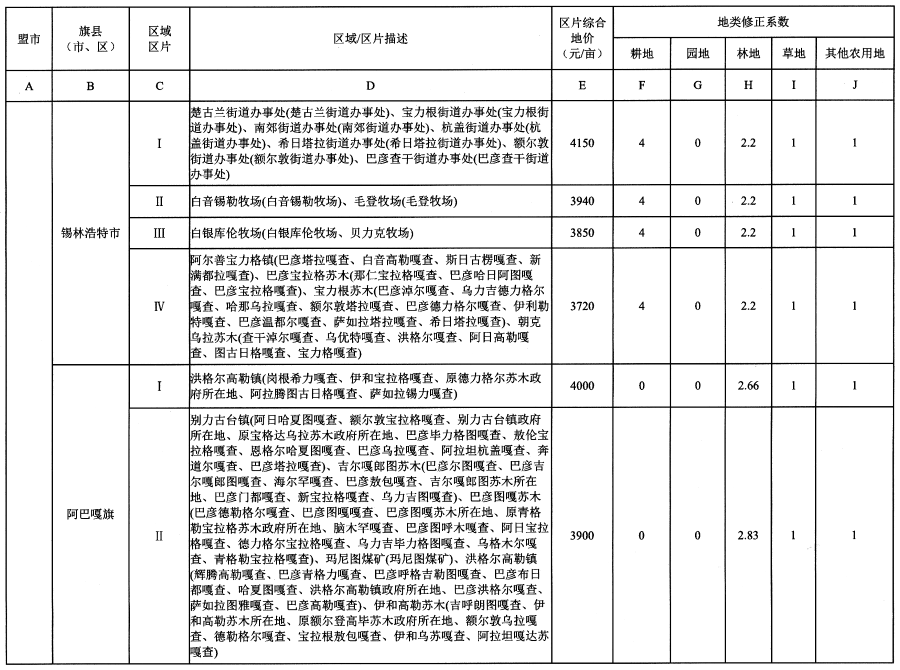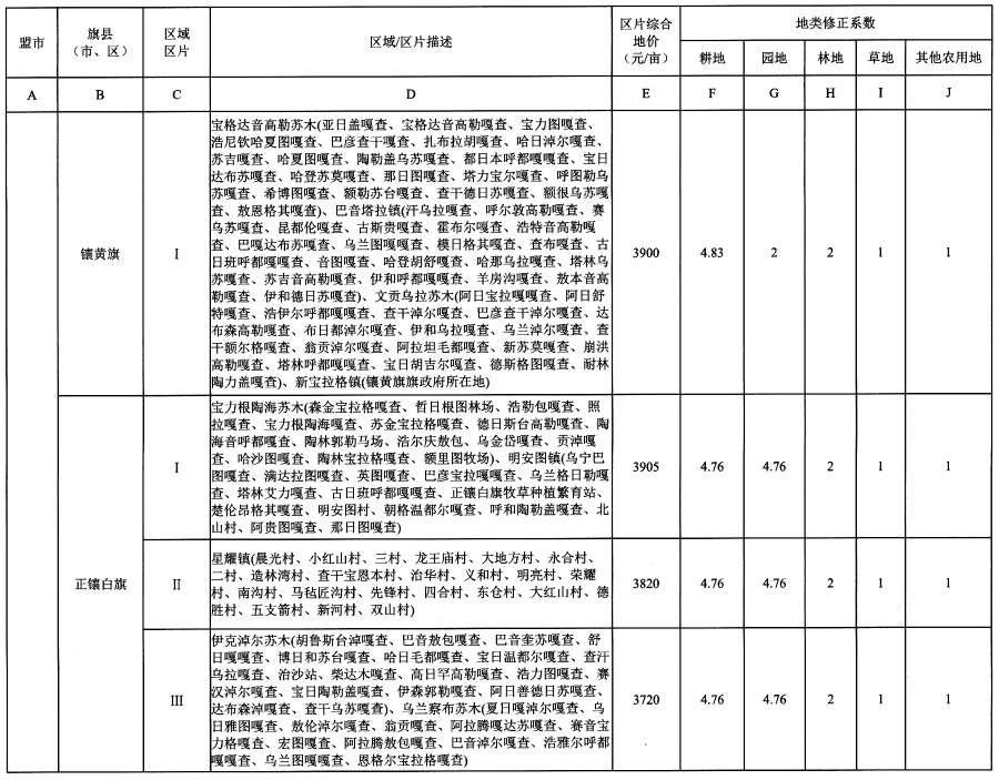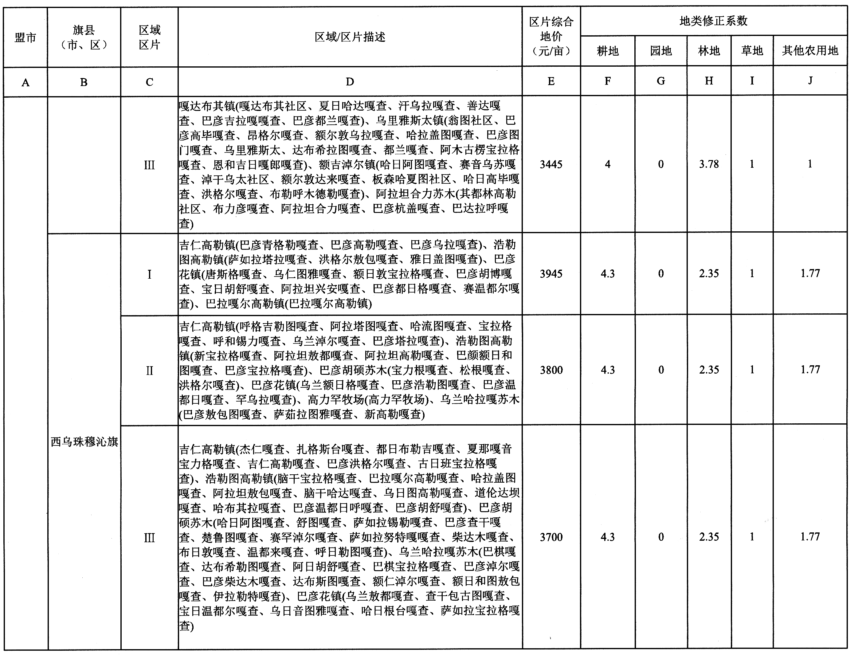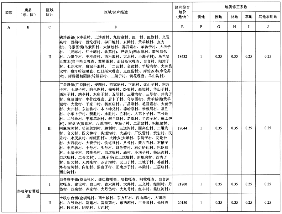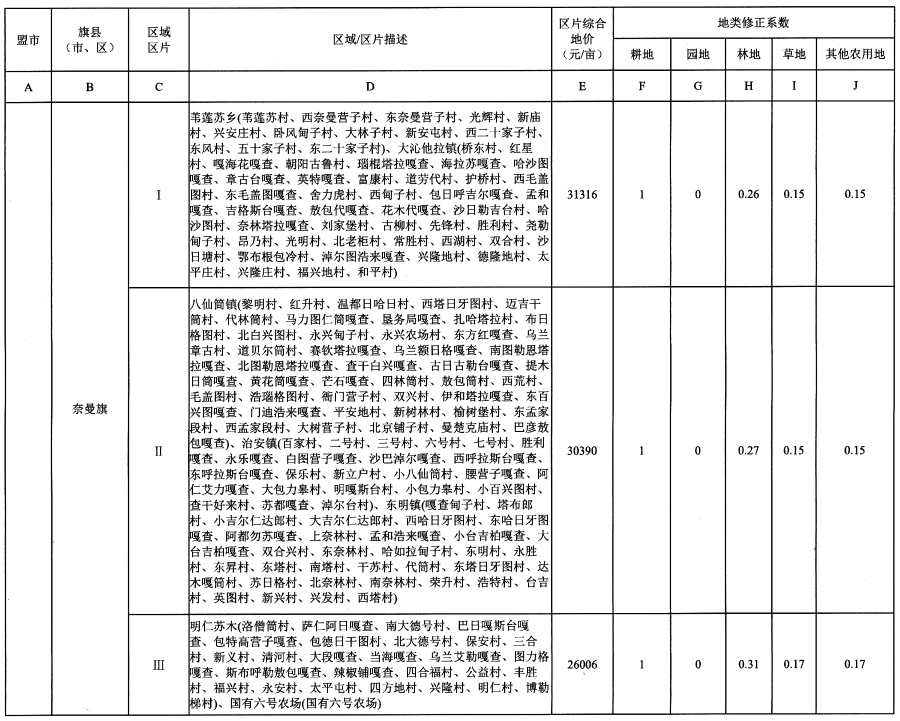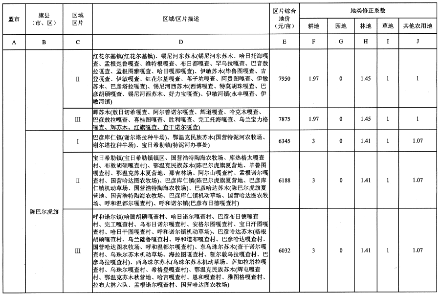 此次公布中未明確具體區(qū)片的蘇木鄉(xiāng)鎮(zhèn)或者嘎查村組,征地補償標(biāo)準按該蘇木鄉(xiāng)鎮(zhèn)所屬旗縣(市、區(qū))或者該嘎查村組所屬蘇木鄉(xiāng)鎮(zhèn)的最高補償標(biāo)準執(zhí)行。征收涉及永久基本農(nóng)田的,按照所屬旗縣(市、區(qū))最高標(biāo)準補償執(zhí)行。