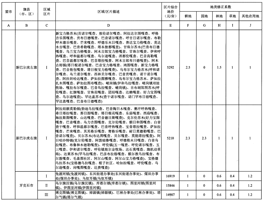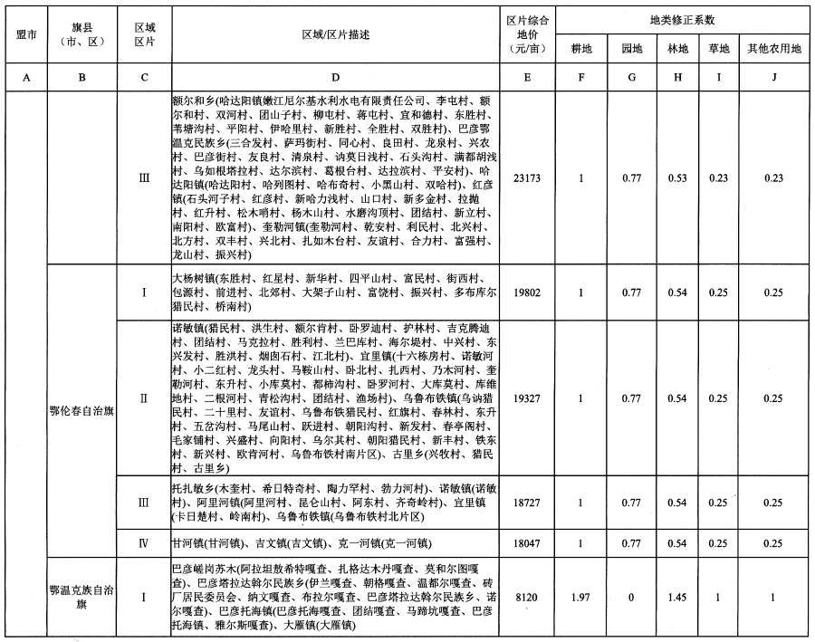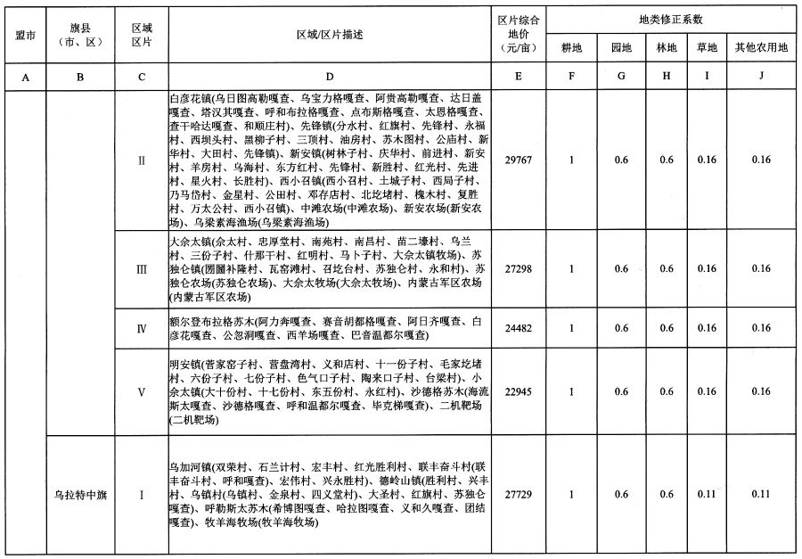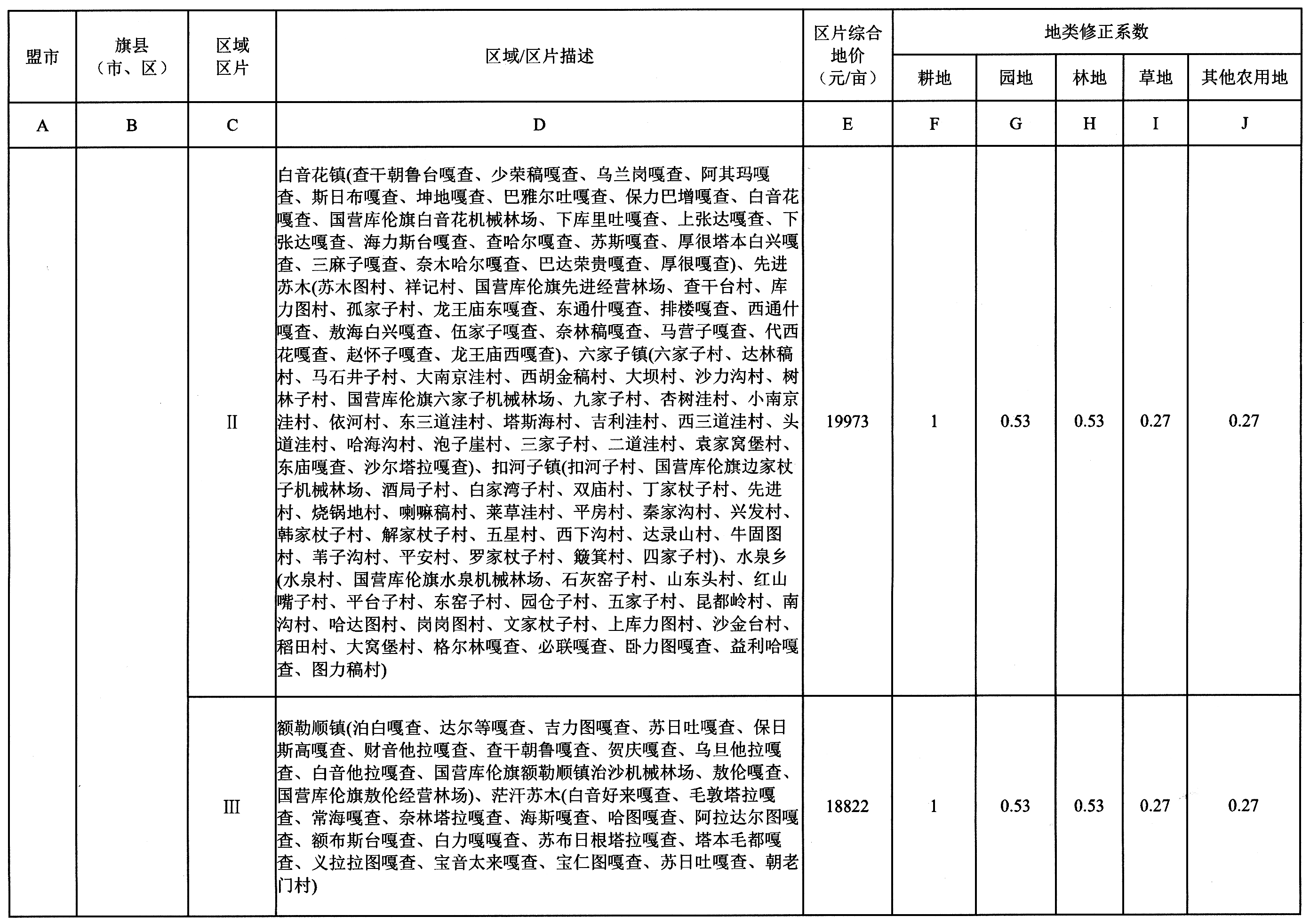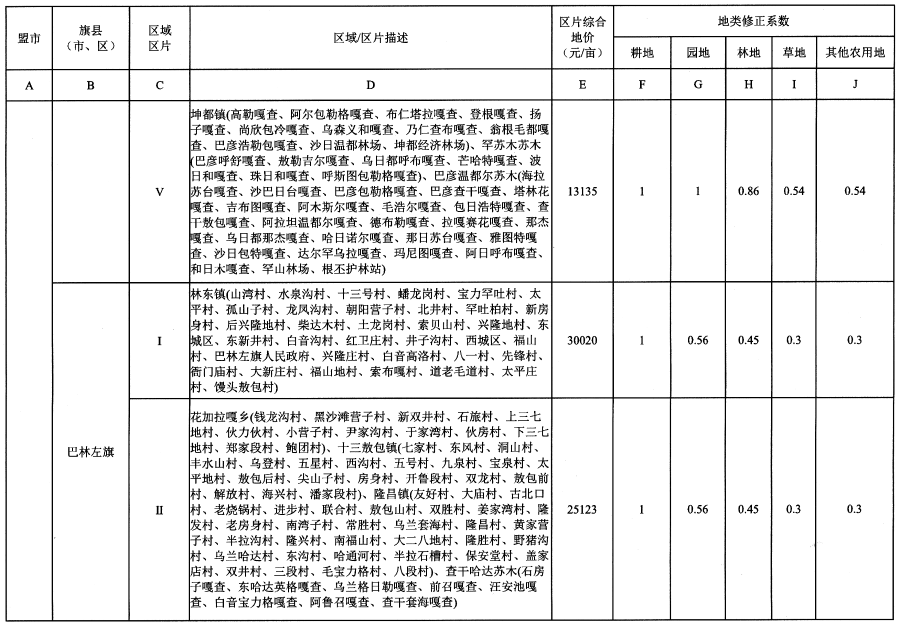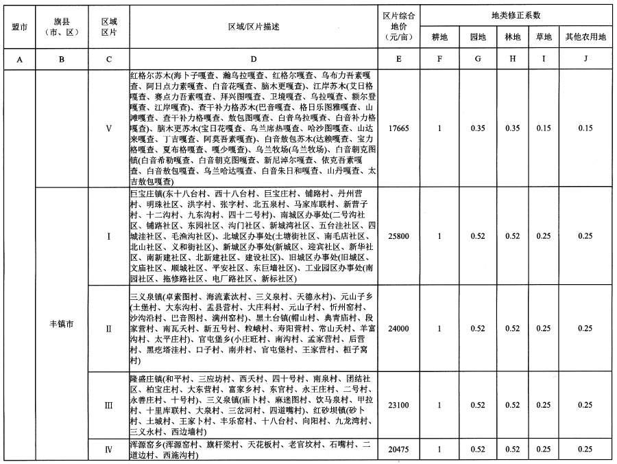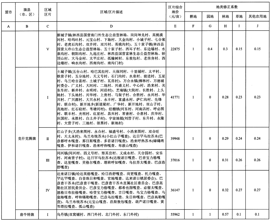 此次公布中未明確具體區(qū)片的蘇木鄉(xiāng)鎮(zhèn)或者嘎查村組,征地補償標(biāo)準按該蘇木鄉(xiāng)鎮(zhèn)所屬旗縣(市、區(qū))或者該嘎查村組所屬蘇木鄉(xiāng)鎮(zhèn)的最高補償標(biāo)準執(zhí)行。征收涉及永久基本農(nóng)田的,按照所屬旗縣(市、區(qū))最高標(biāo)準補償執(zhí)行。
