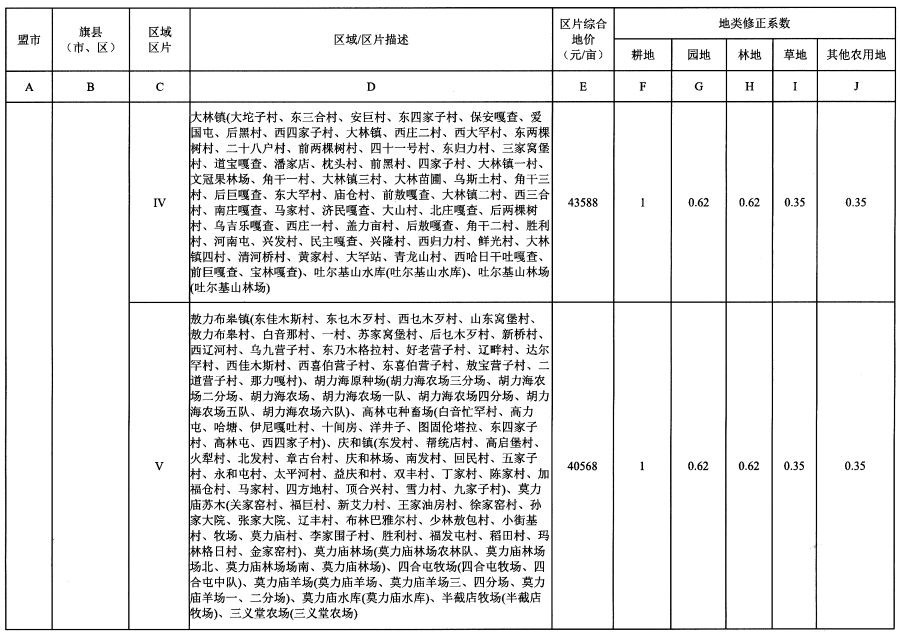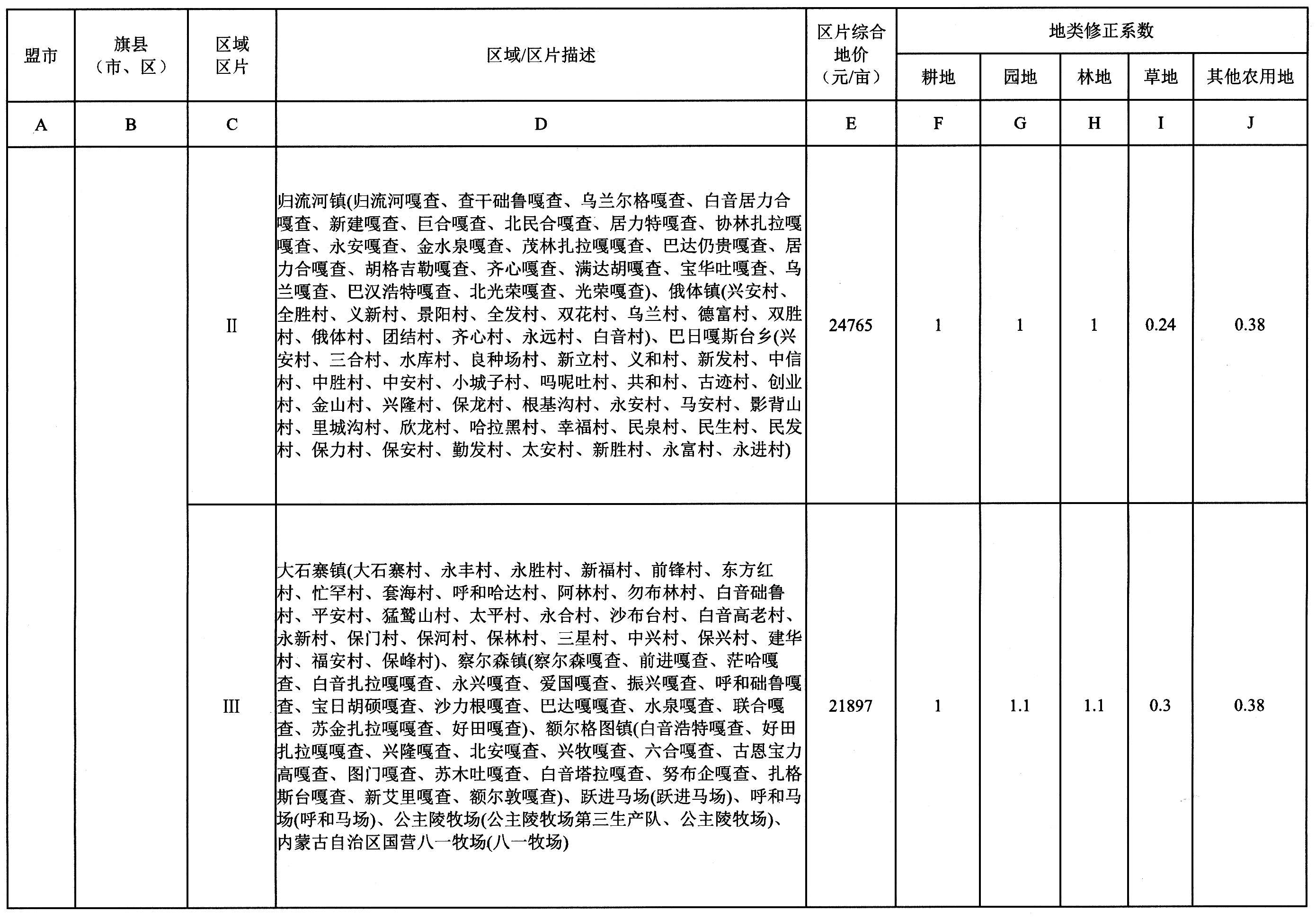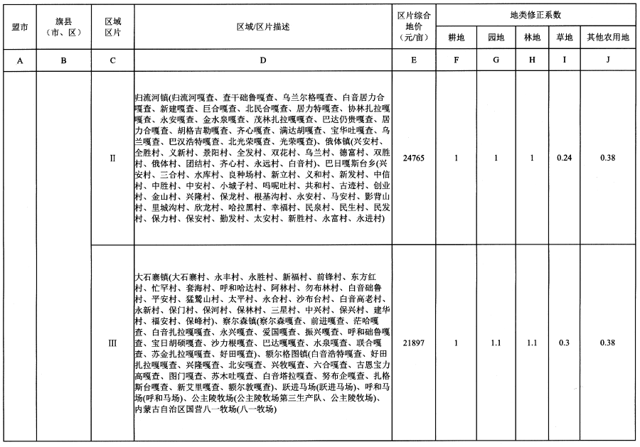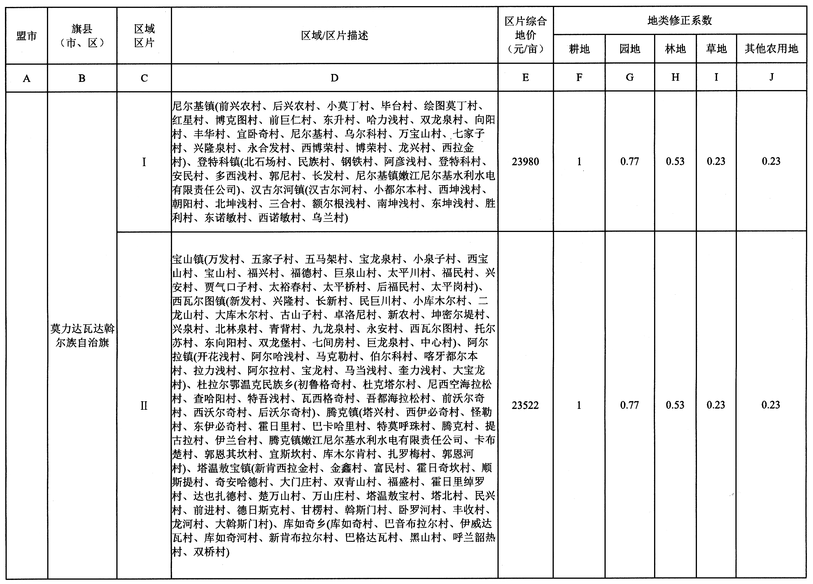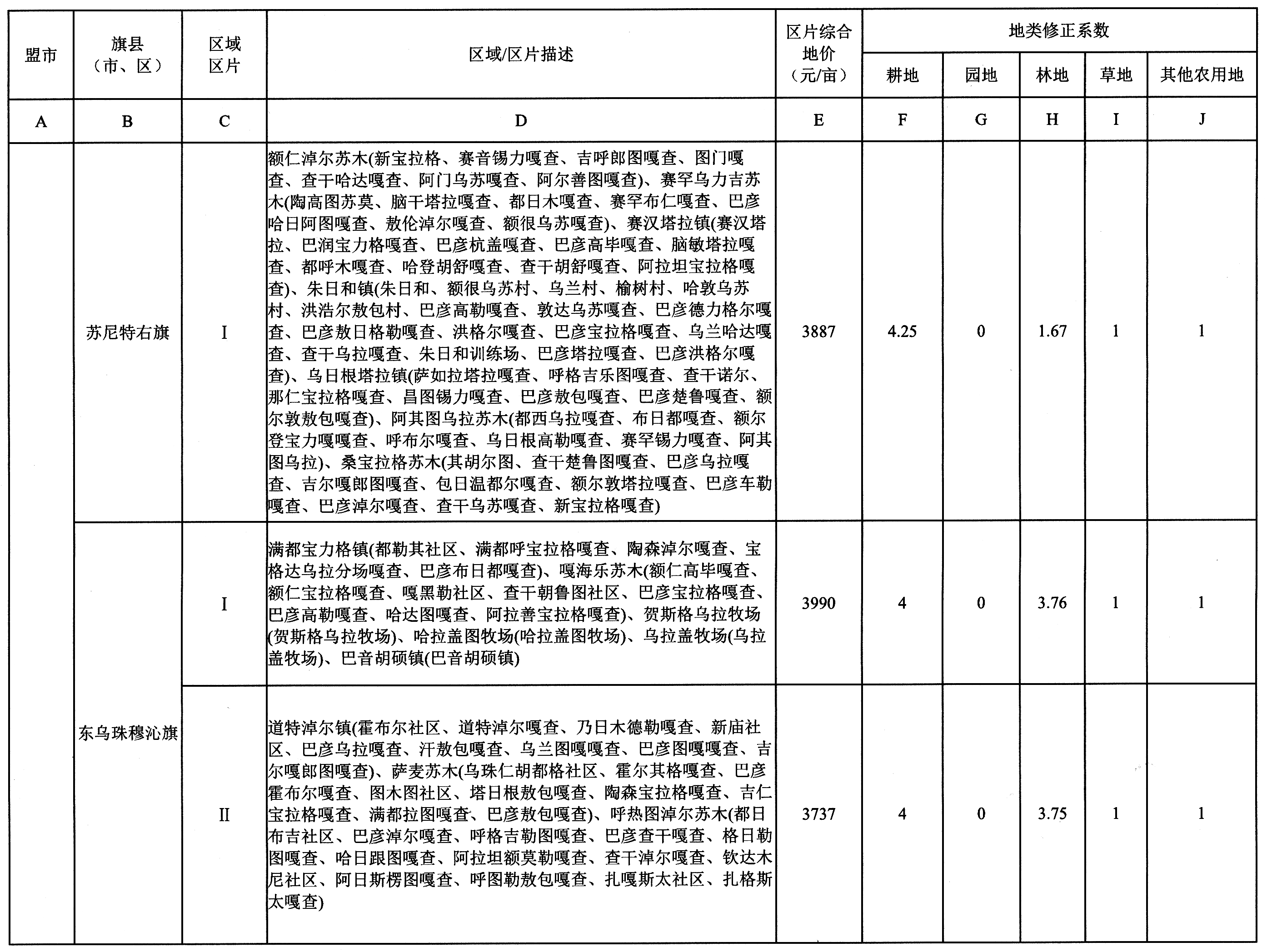 此次公布中未明確具體區(qū)片的蘇木鄉(xiāng)鎮(zhèn)或者嘎查村組,征地補償標(biāo)準按該蘇木鄉(xiāng)鎮(zhèn)所屬旗縣(市、區(qū))或者該嘎查村組所屬蘇木鄉(xiāng)鎮(zhèn)的最高補償標(biāo)準執(zhí)行。征收涉及永久基本農(nóng)田的,按照所屬旗縣(市、區(qū))最高標(biāo)準補償執(zhí)行。