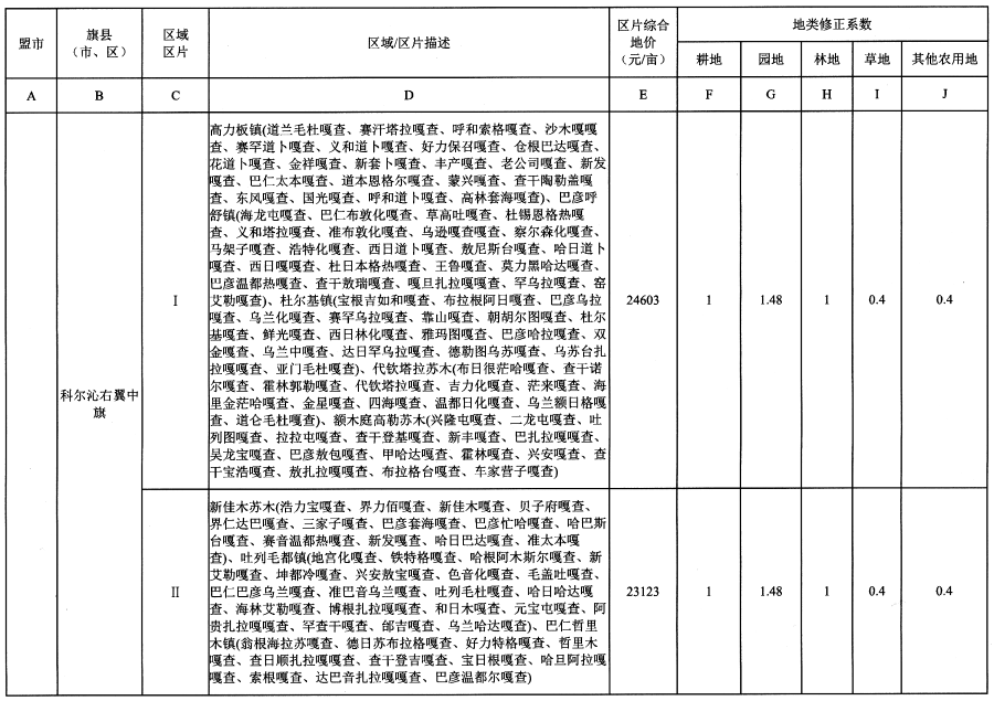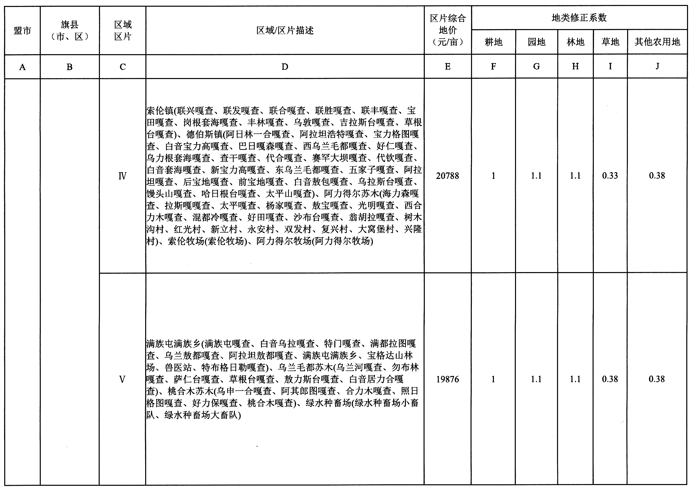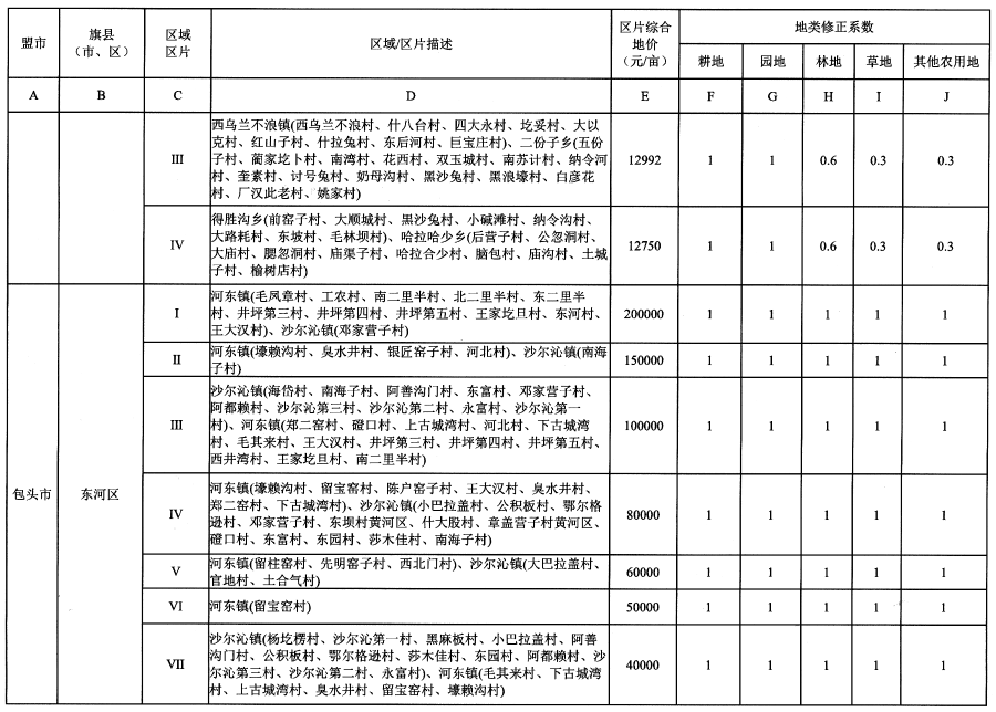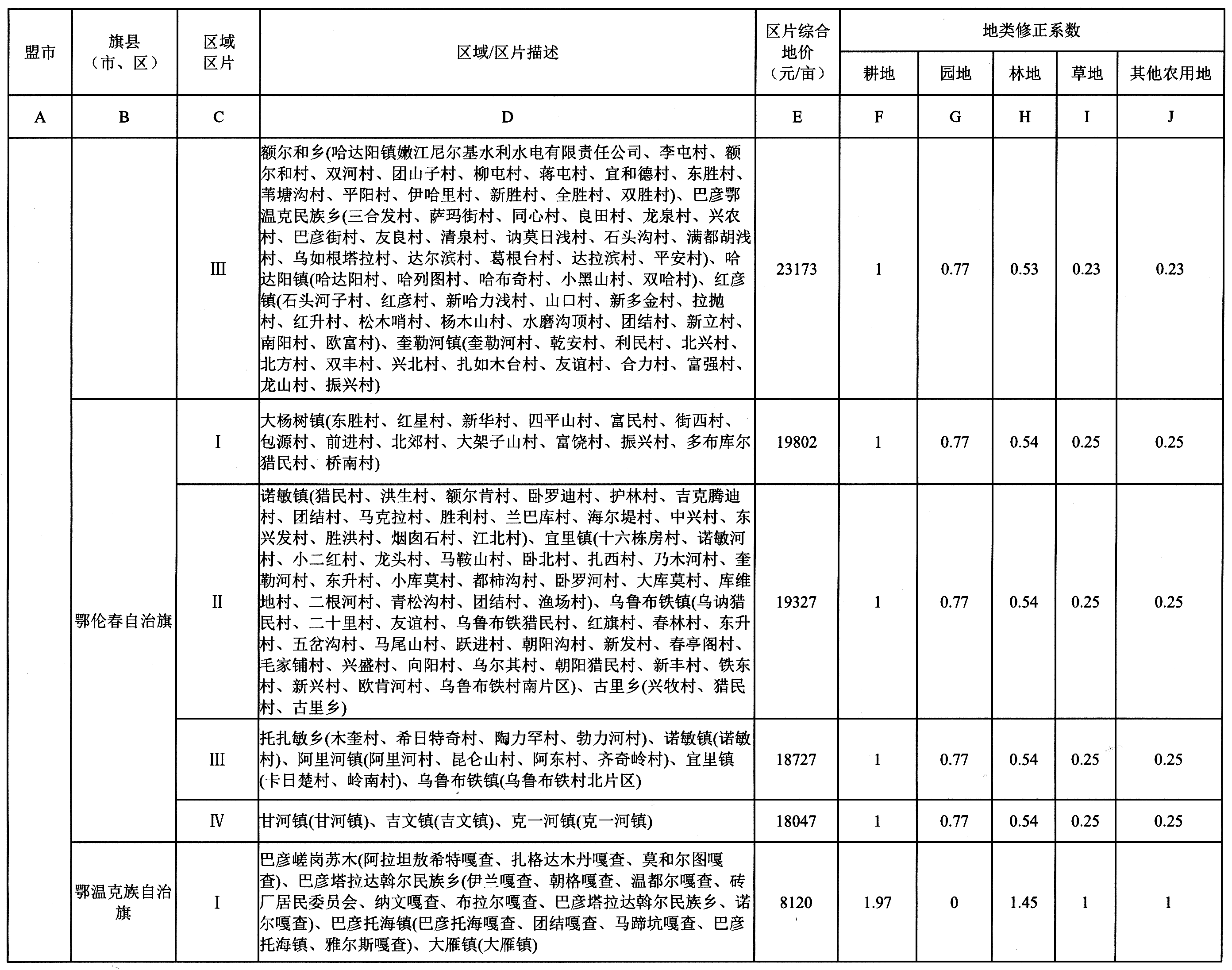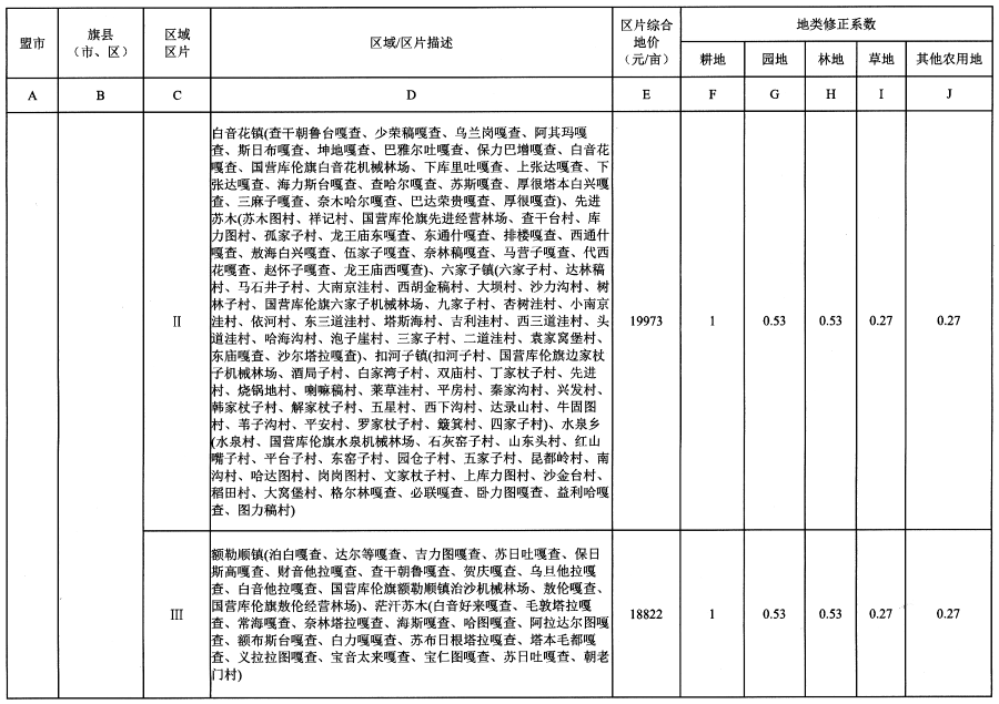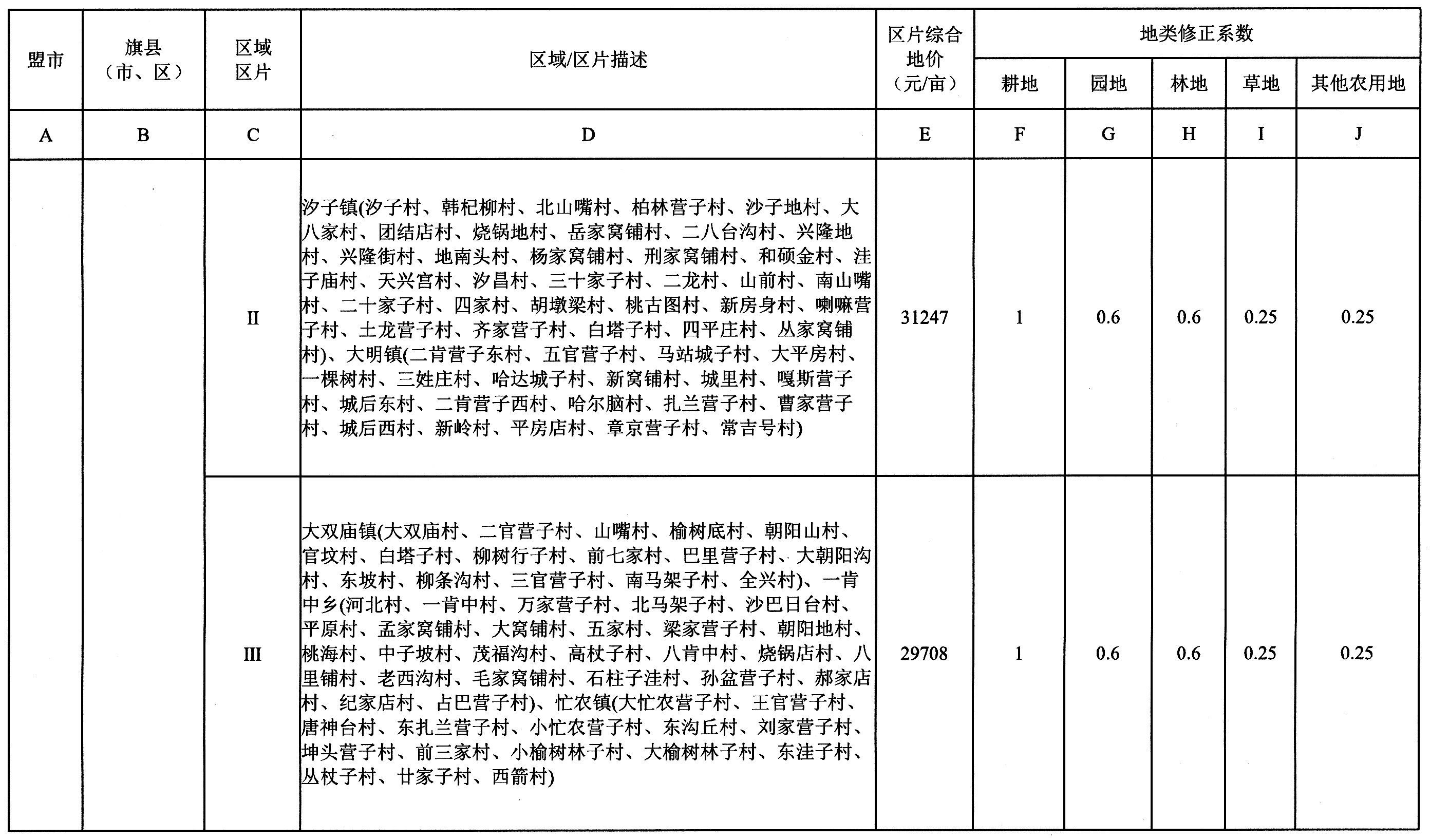 此次公布中未明確具體區(qū)片的蘇木鄉(xiāng)鎮(zhèn)或者嘎查村組,征地補償標(biāo)準按該蘇木鄉(xiāng)鎮(zhèn)所屬旗縣(市、區(qū))或者該嘎查村組所屬蘇木鄉(xiāng)鎮(zhèn)的最高補償標(biāo)準執(zhí)行。征收涉及永久基本農(nóng)田的,按照所屬旗縣(市、區(qū))最高標(biāo)準補償執(zhí)行。