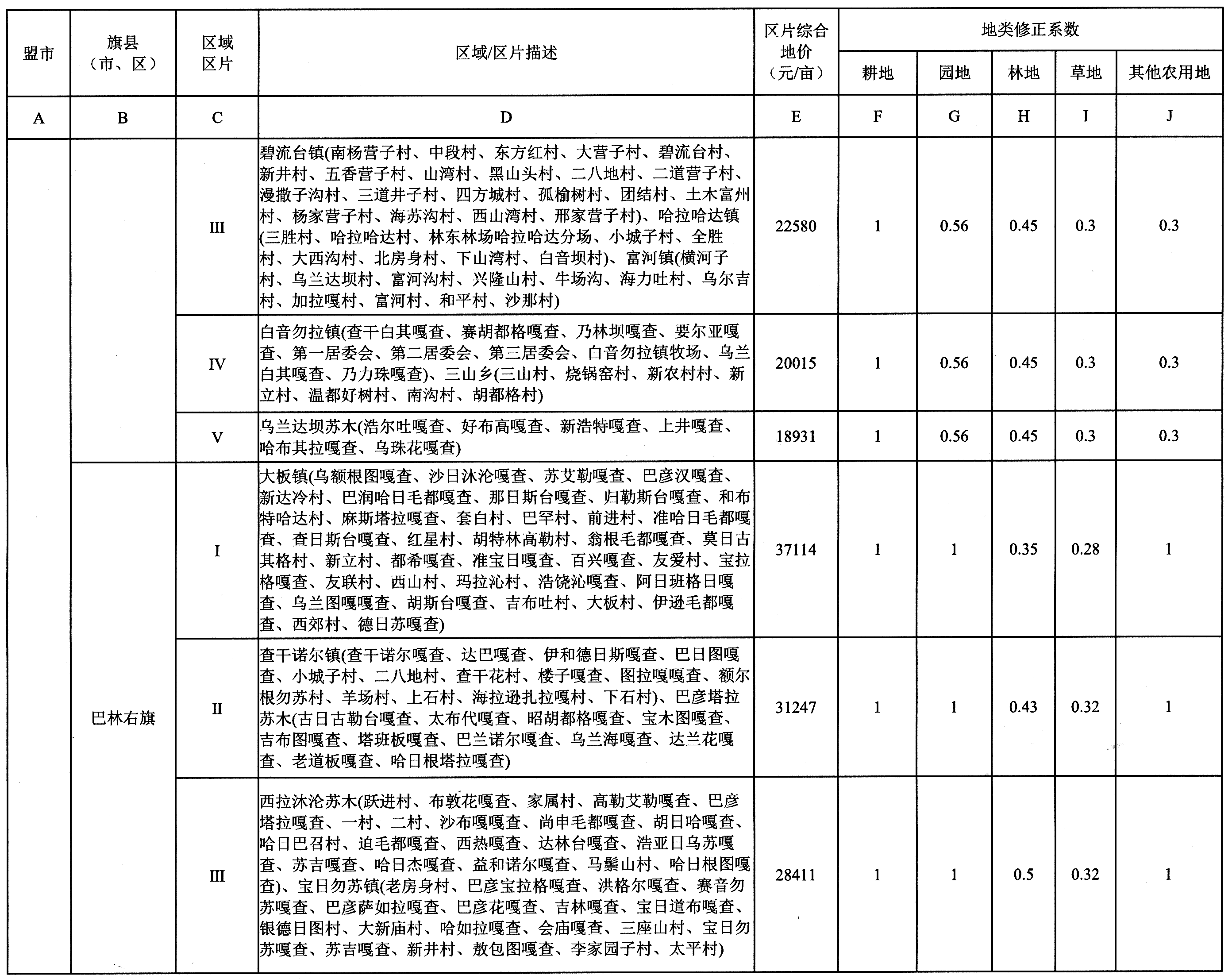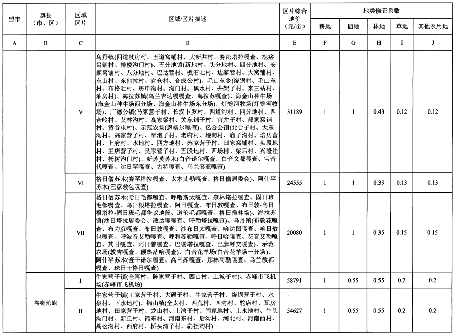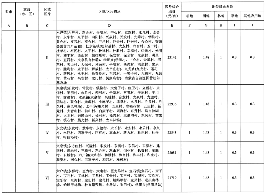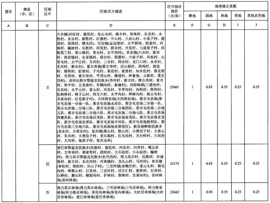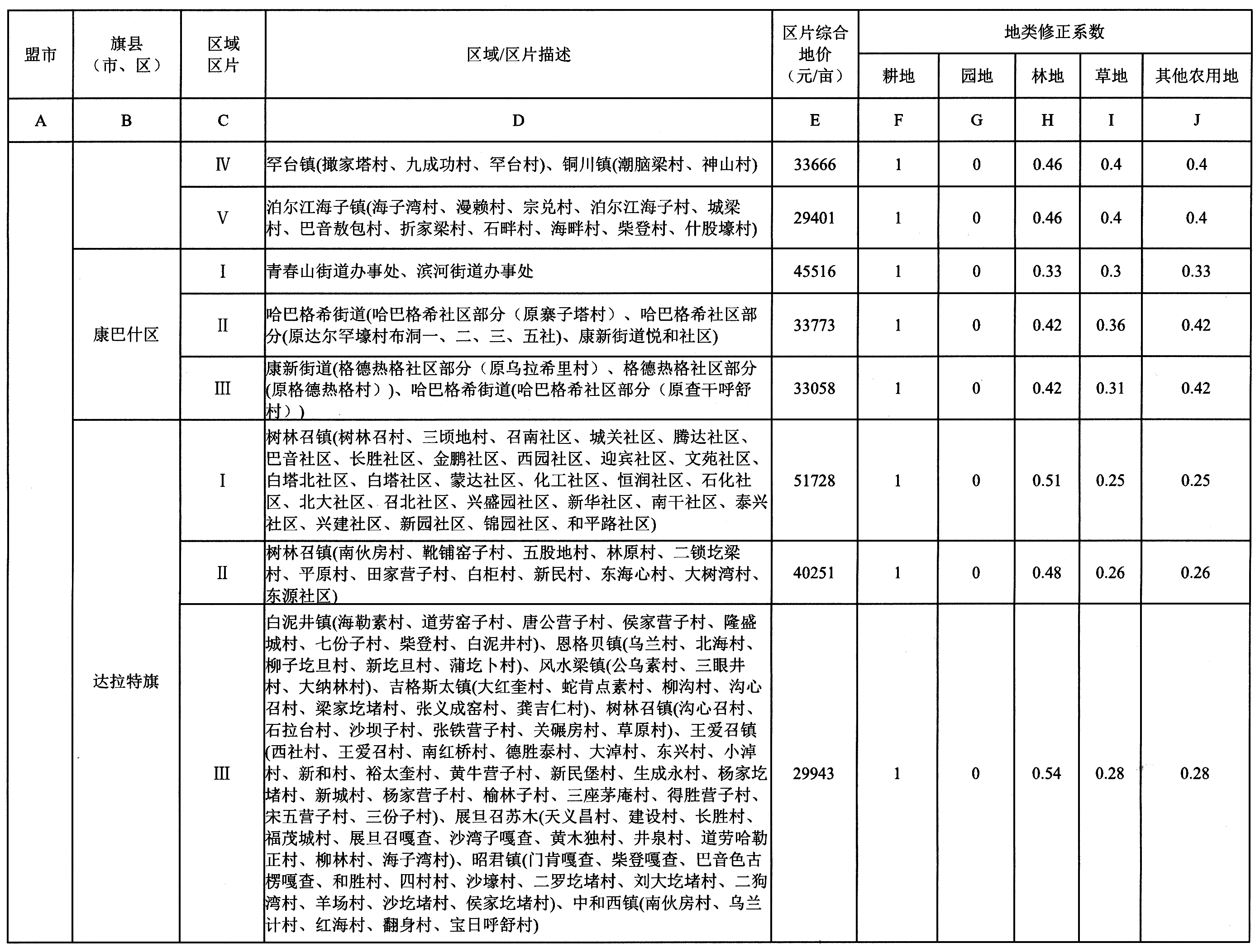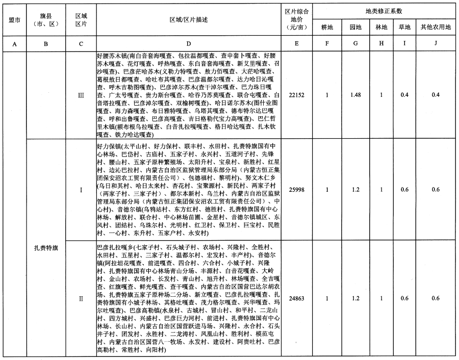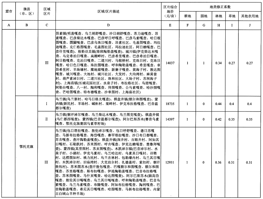 此次公布中未明確具體區(qū)片的蘇木鄉(xiāng)鎮(zhèn)或者嘎查村組,征地補償標(biāo)準按該蘇木鄉(xiāng)鎮(zhèn)所屬旗縣(市、區(qū))或者該嘎查村組所屬蘇木鄉(xiāng)鎮(zhèn)的最高補償標(biāo)準執(zhí)行。征收涉及永久基本農(nóng)田的,按照所屬旗縣(市、區(qū))最高標(biāo)準補償執(zhí)行。