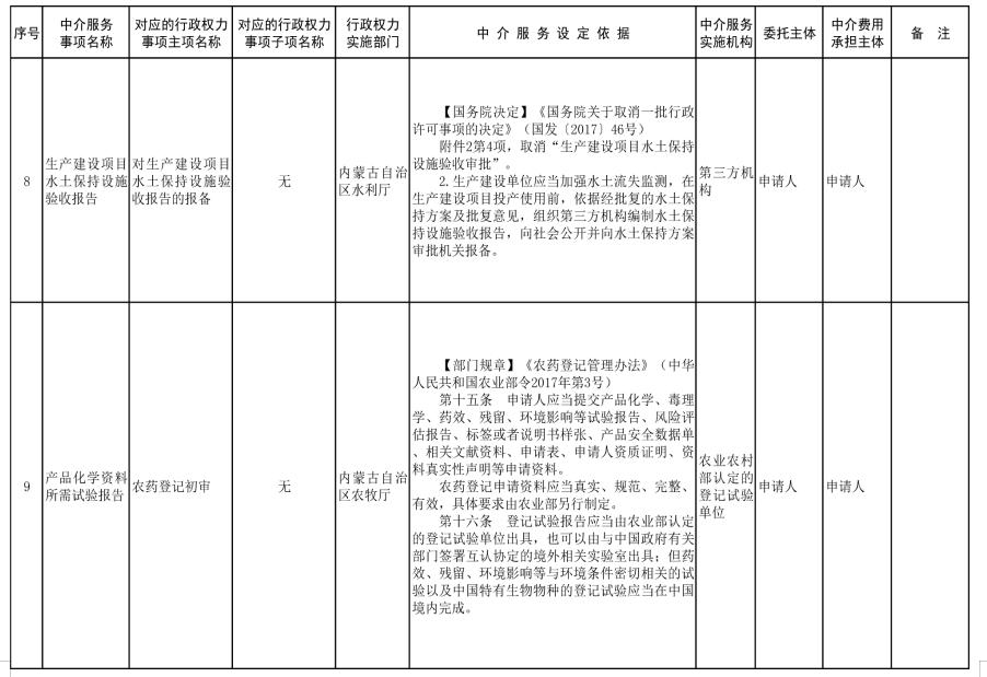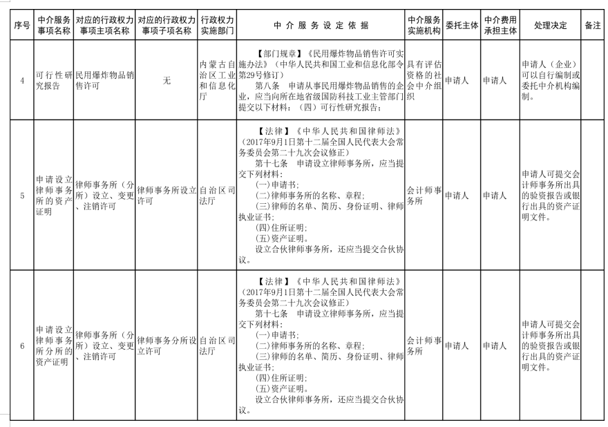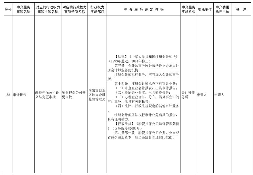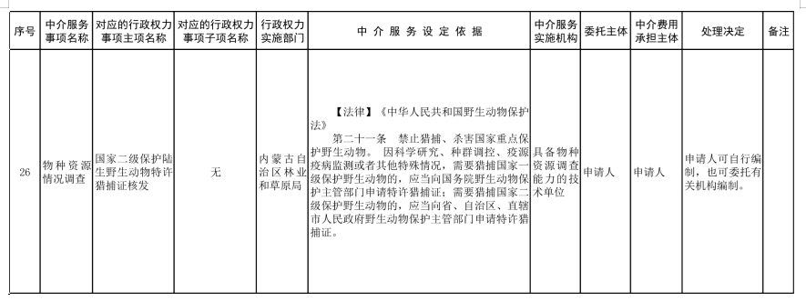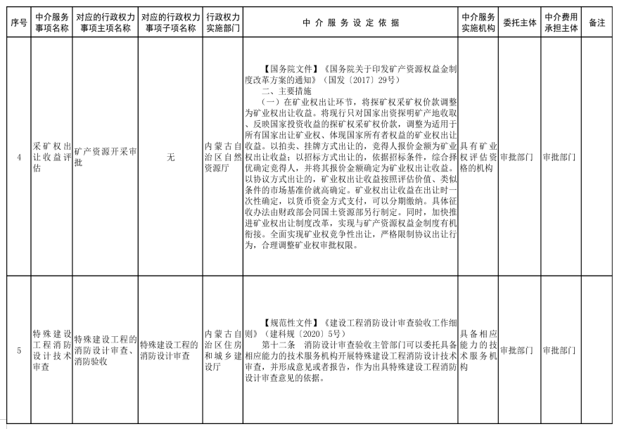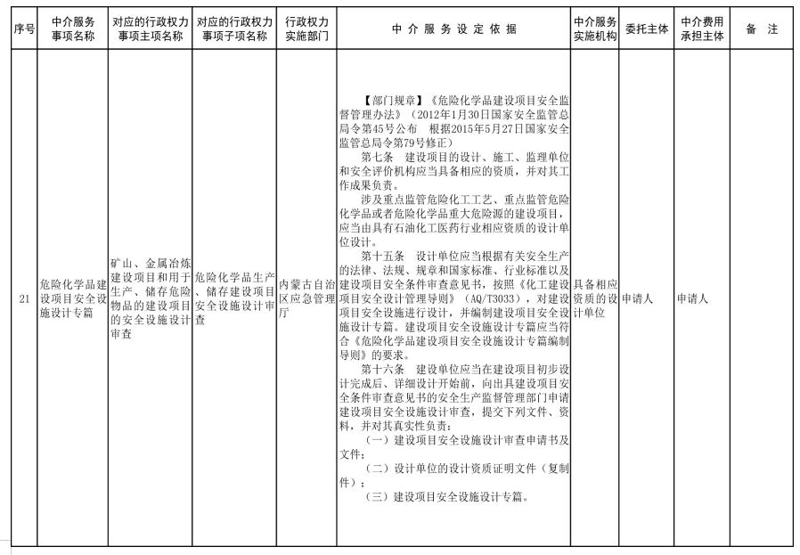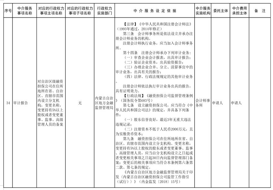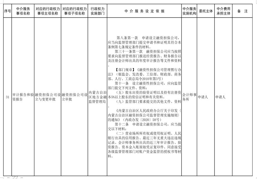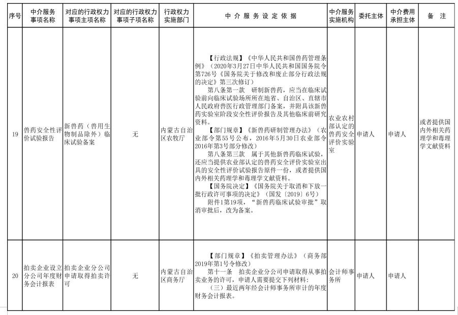 中介服務事項清單(2021年)的通知