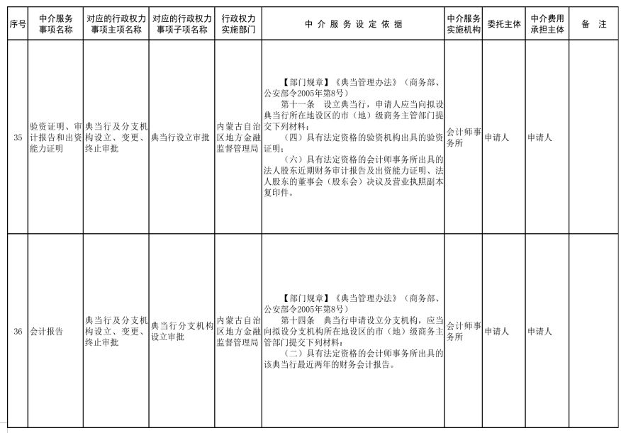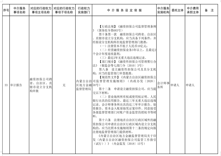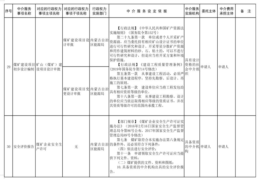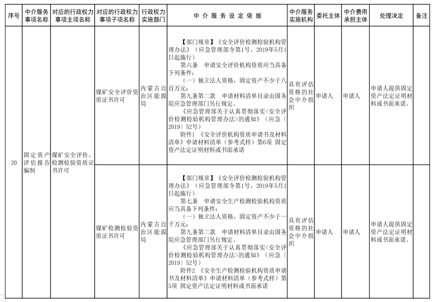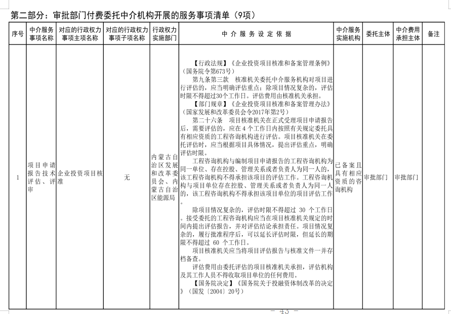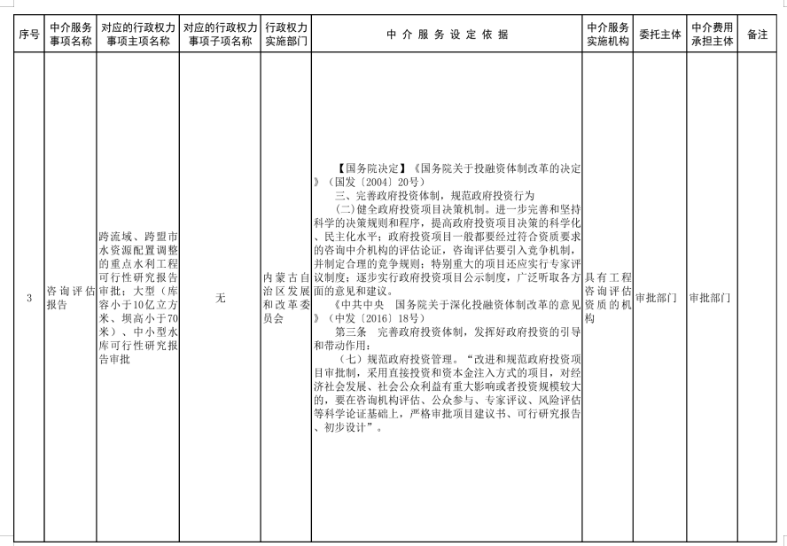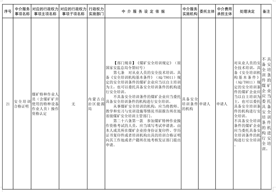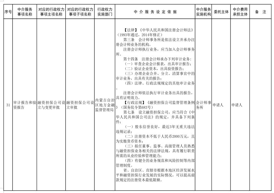 中介服務事項清單(2021年)的通知