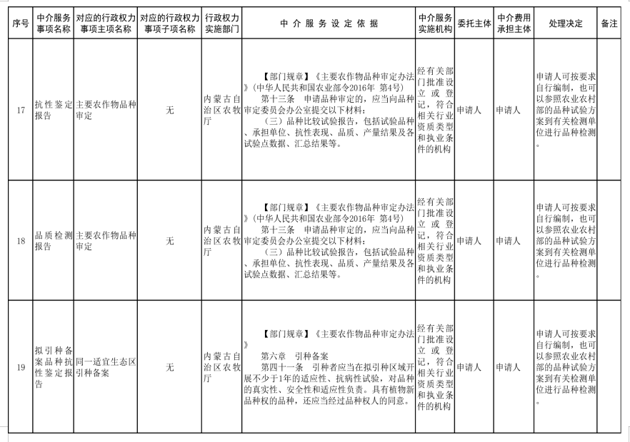 自治區(qū)對本級各部門在實施行政審批、備案等行政權力過程中所涉及的中介服務事項實行清單式管理。凡未納入《內蒙古自治區(qū)本級保留由申請人付費委托行政權力中介服務事項清單(2021年)》的事項,行政機關不得以任何形式要求申請人委托中介機構開展服務,包括各類技術審查、論證、評估、評價、檢驗、檢測、鑒證、鑒定、證明、咨詢、試驗等。可通過征求部門意見、加強事中事后監(jiān)管予以解決或申請人可按要求自行完成的事項,一律不得設定強制性中介服務;現有或已經取消的行政權力事項,一律不得轉為中介服務;單項中介服務事項,一律不得拆分為多個環(huán)節(jié)。